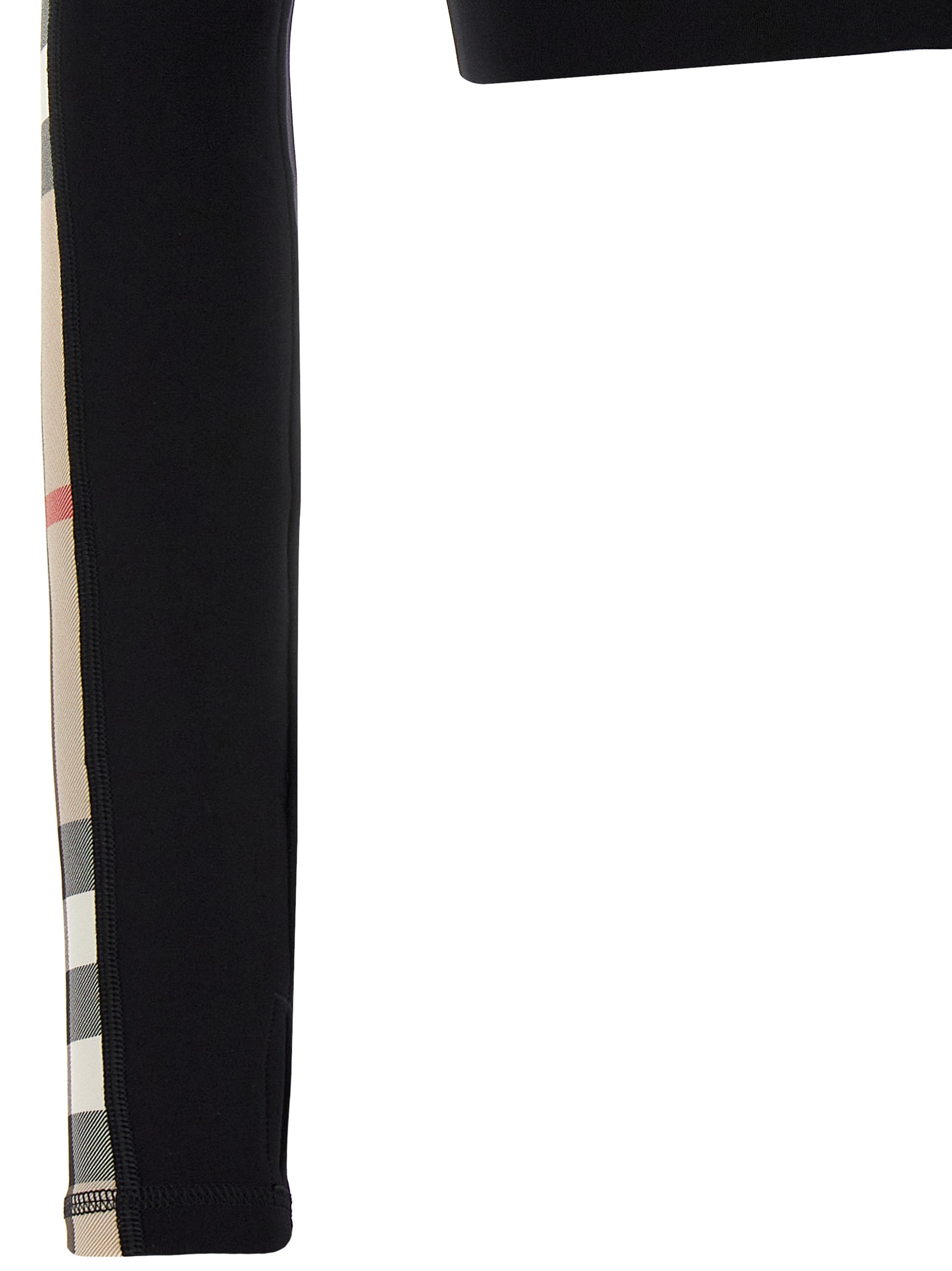 ‘Cynthia’ stretch jersey sweatshirt with Burberry Check details, high neck, zip closure, crop style, long sleeves.