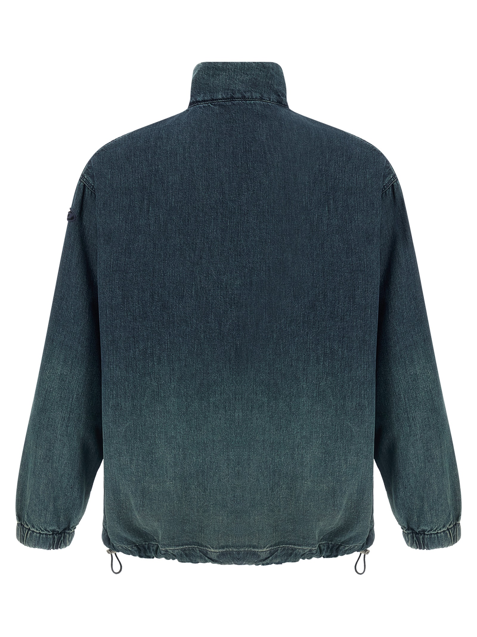 ‘D-Krap-S6’ stonewashed TENCEL™ Lyocell jacket with laser and spray processing, high neck, front zip closure, pockets, long sleeves with cut-out logo, elastic cuffs and dropped shoulders, drawstring on the hem.