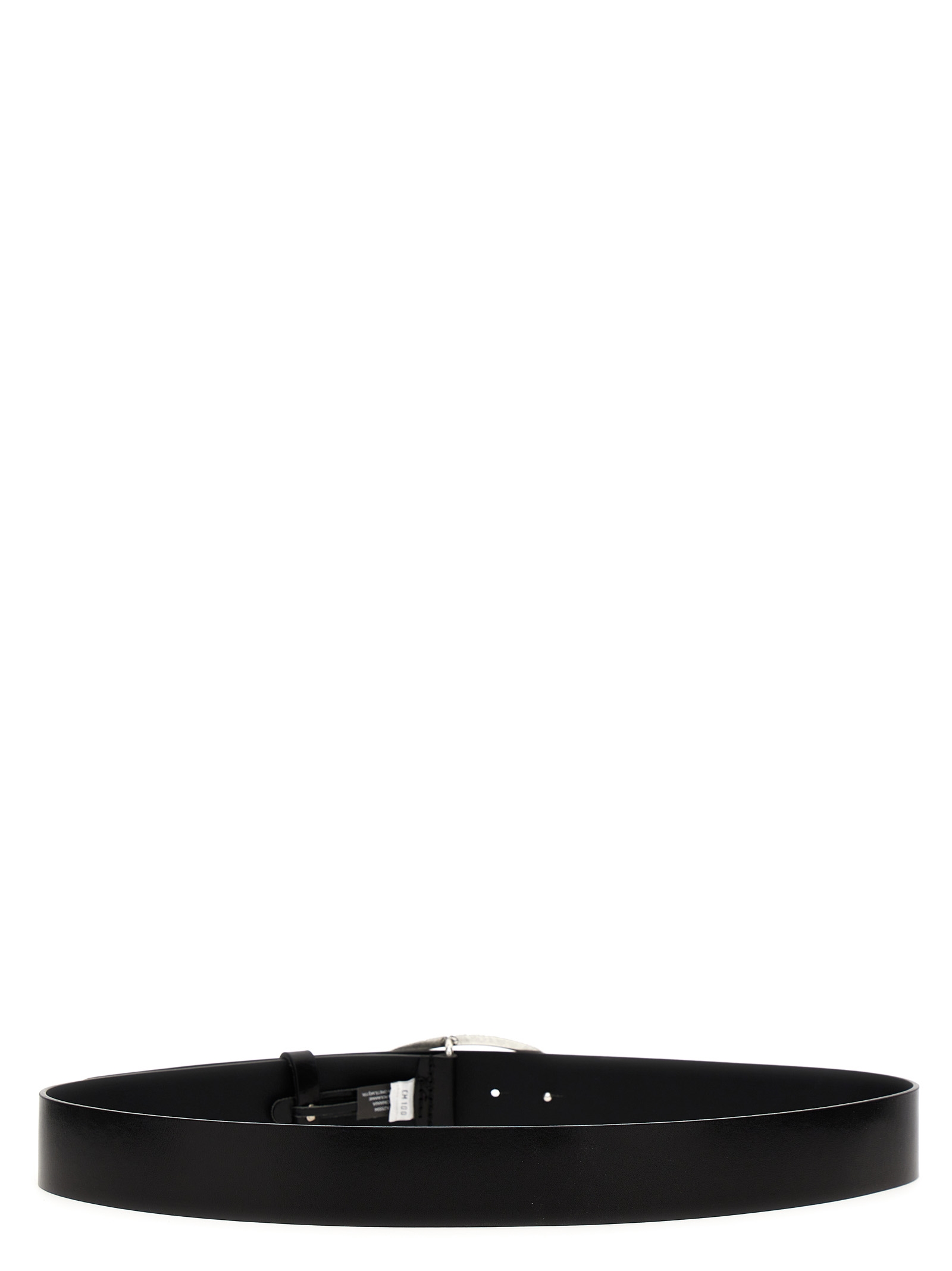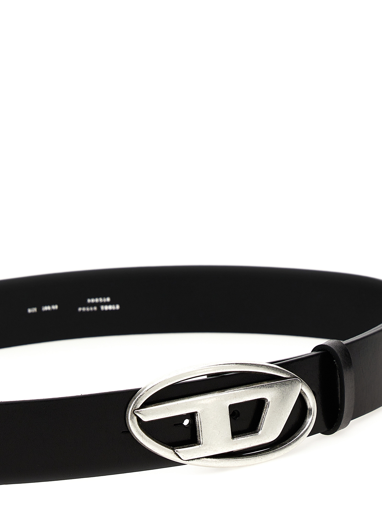 Leather belt with vintage-effect silver metal buckle with D logo.
