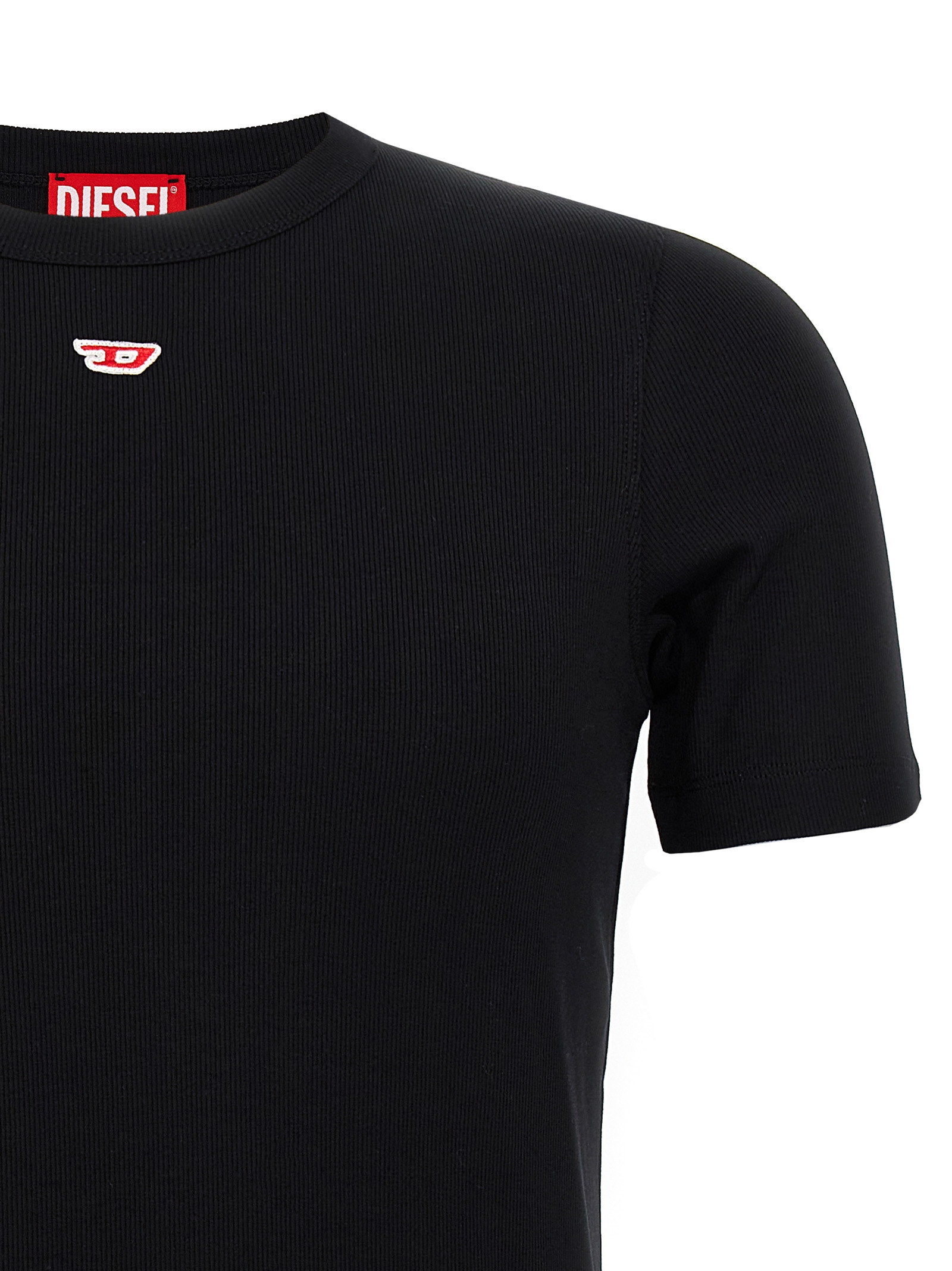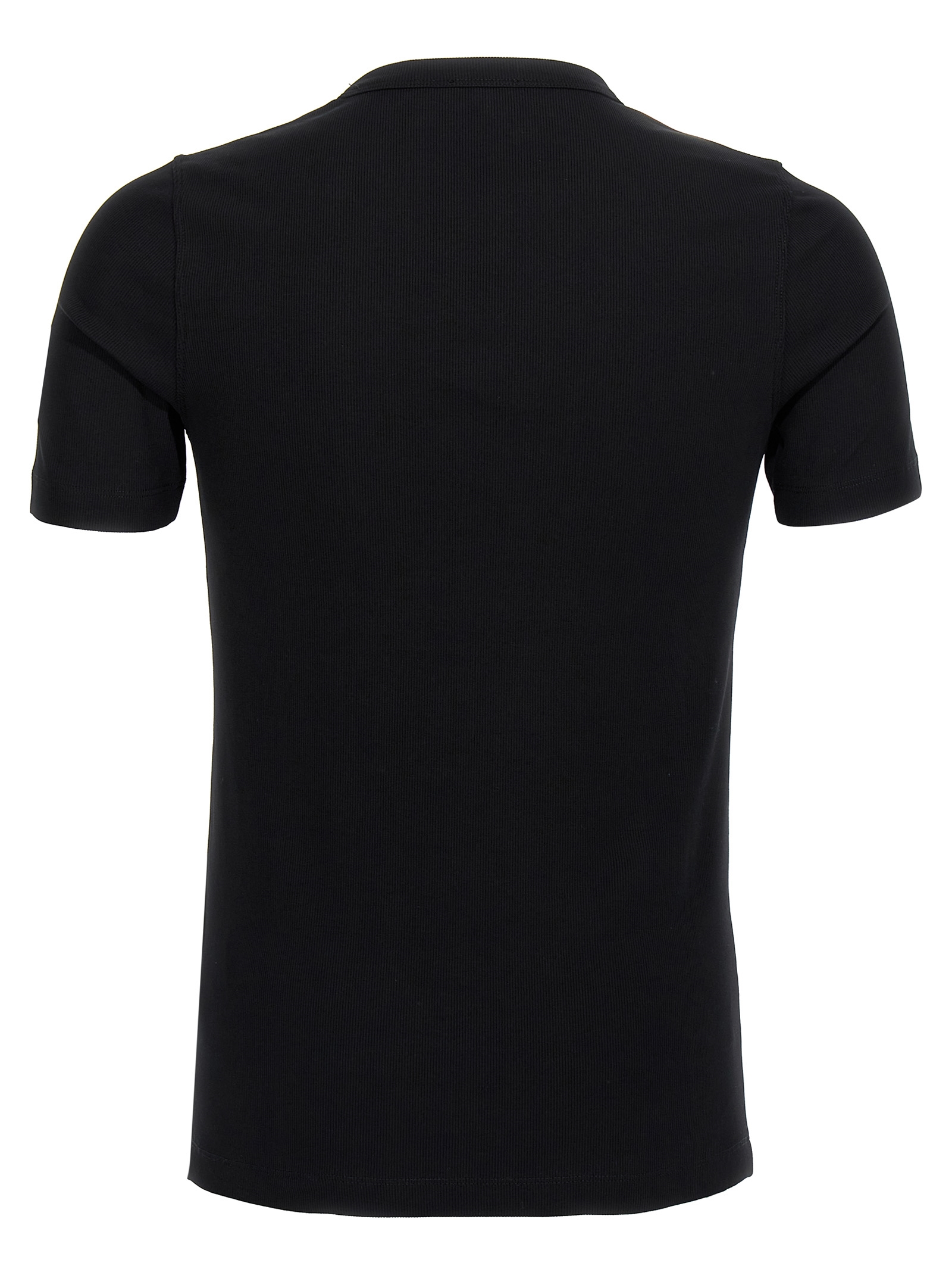 Micro ribbed stretch cotton D-Ribber-N t-shirt, with front logo patch, crew neck, and short sleeves.
