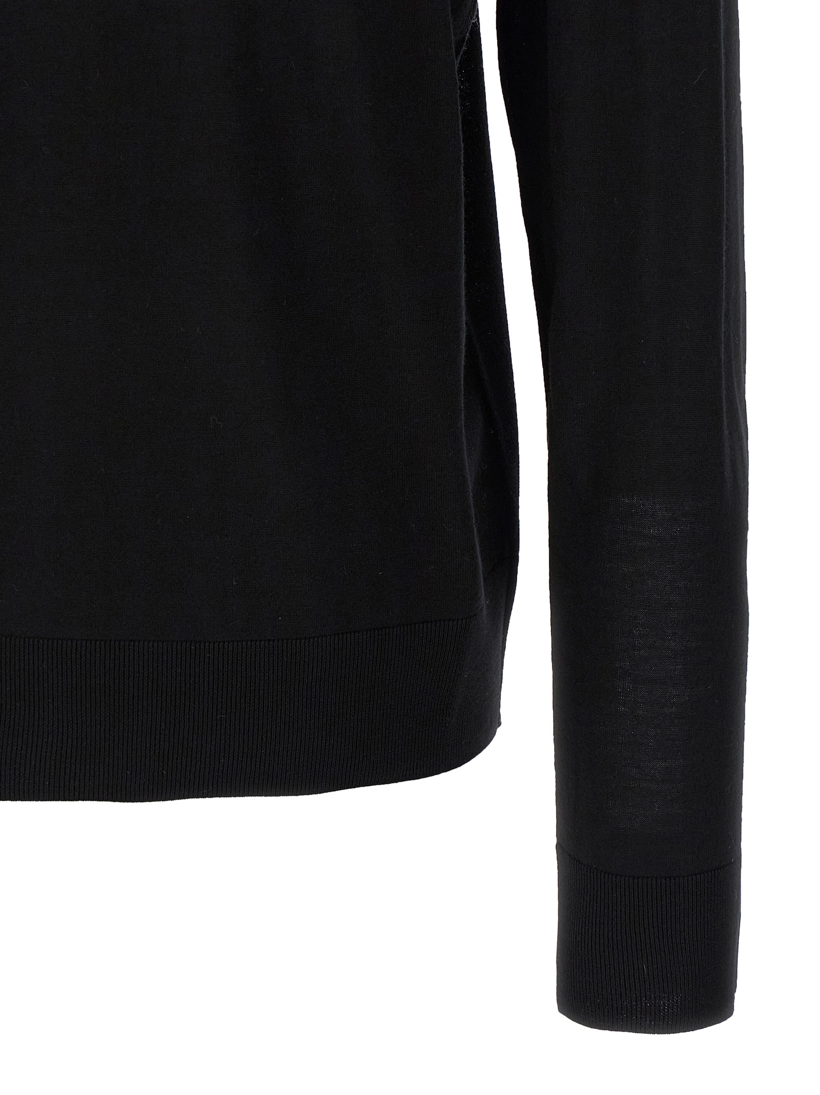 Thin wool sweater, crew neck, logo embroidery detail, long cuffed sleeves