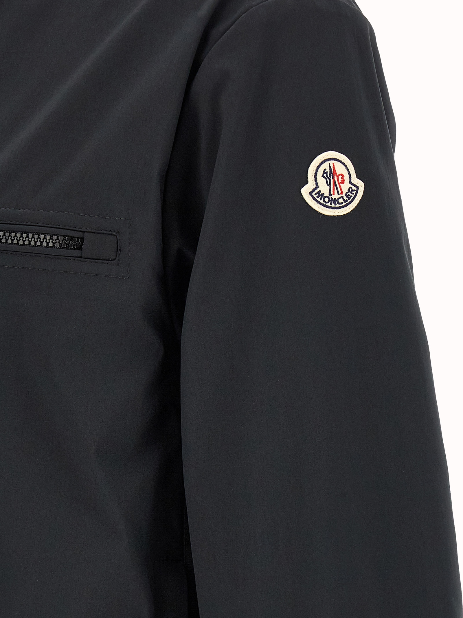 Danby jacket in stretch fabric with AirSoft lining, stand-up collar, front zip closure, pockets, long sleeves with elastic cuffs and logo patch appliqué, and elastic hem.