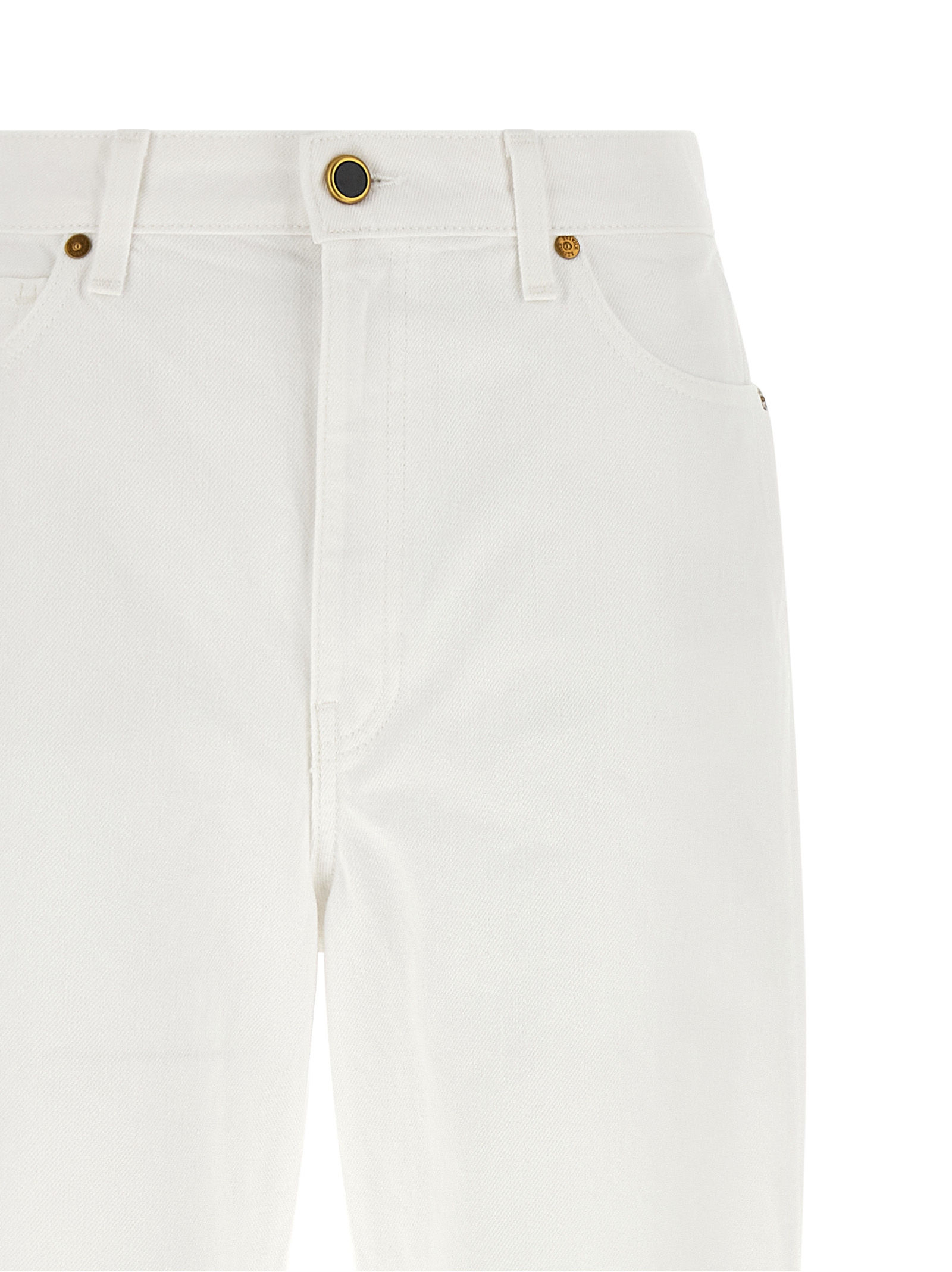 ‘Danielle’ cotton denim jeans with high waist, straight leg, front zip and button closure, five pockets, back leather logo tag.