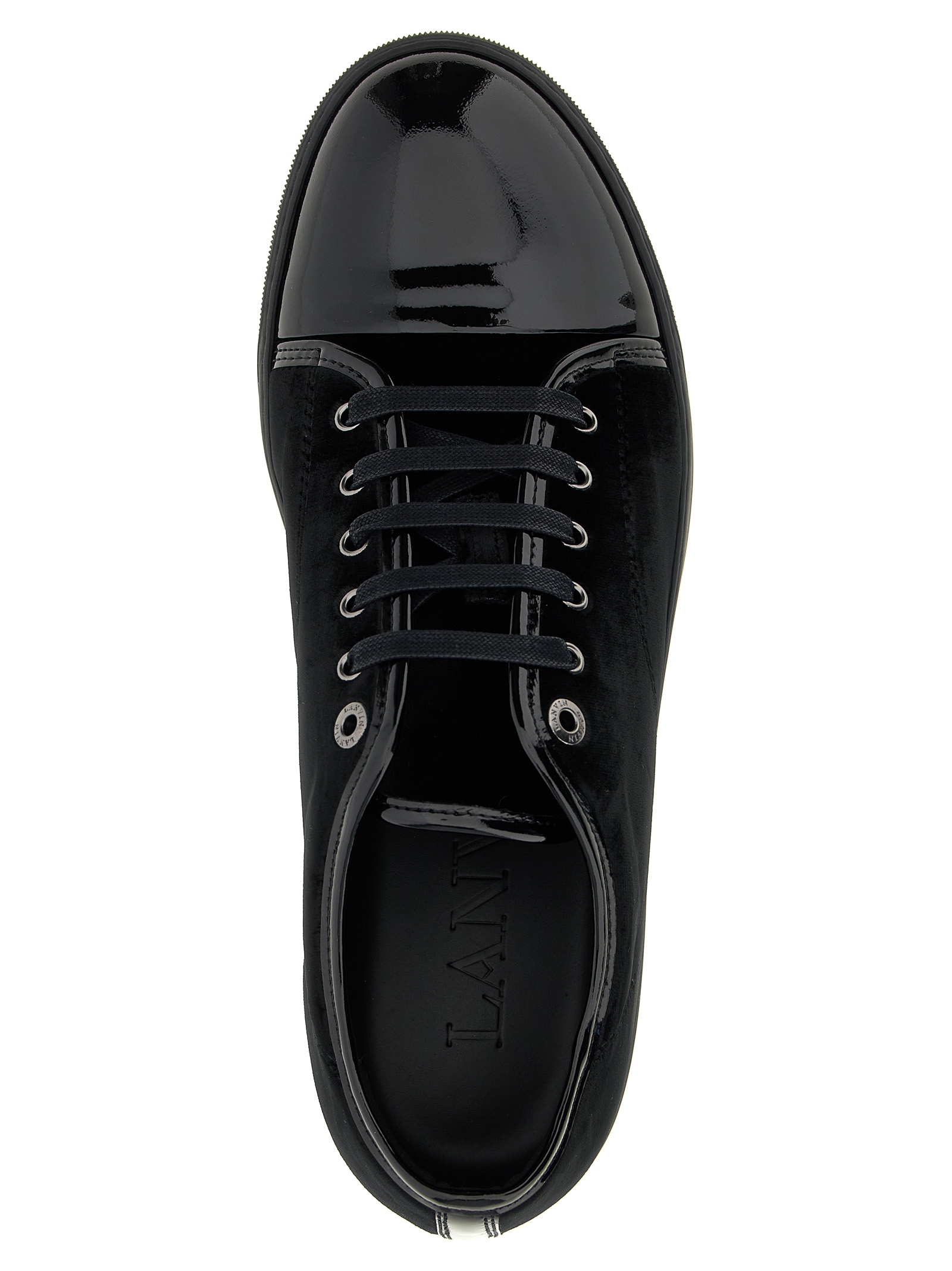 ‘DBB1’ velvet sneakers with patent leather toe, lace-up closure, rubber sole.