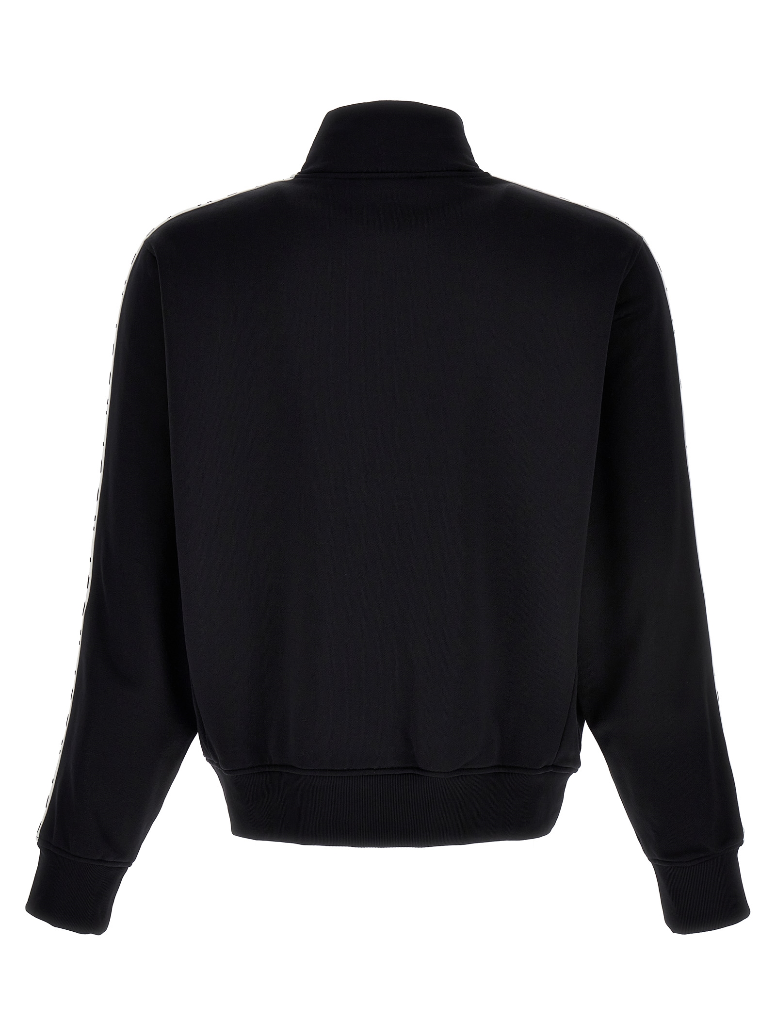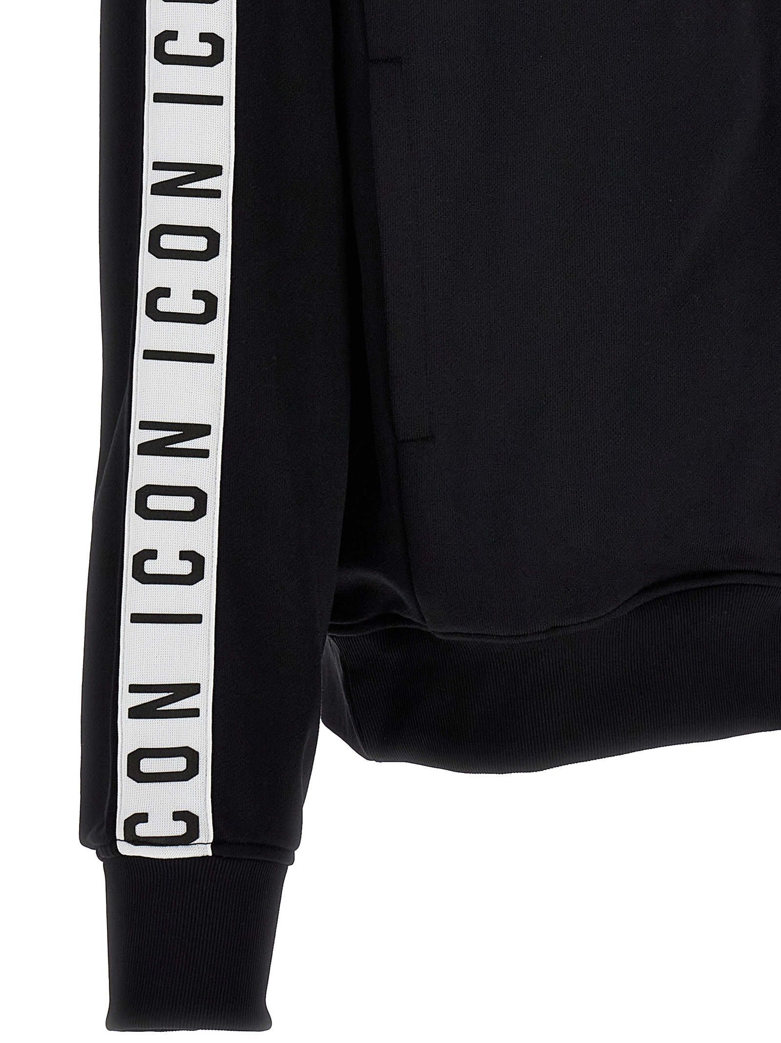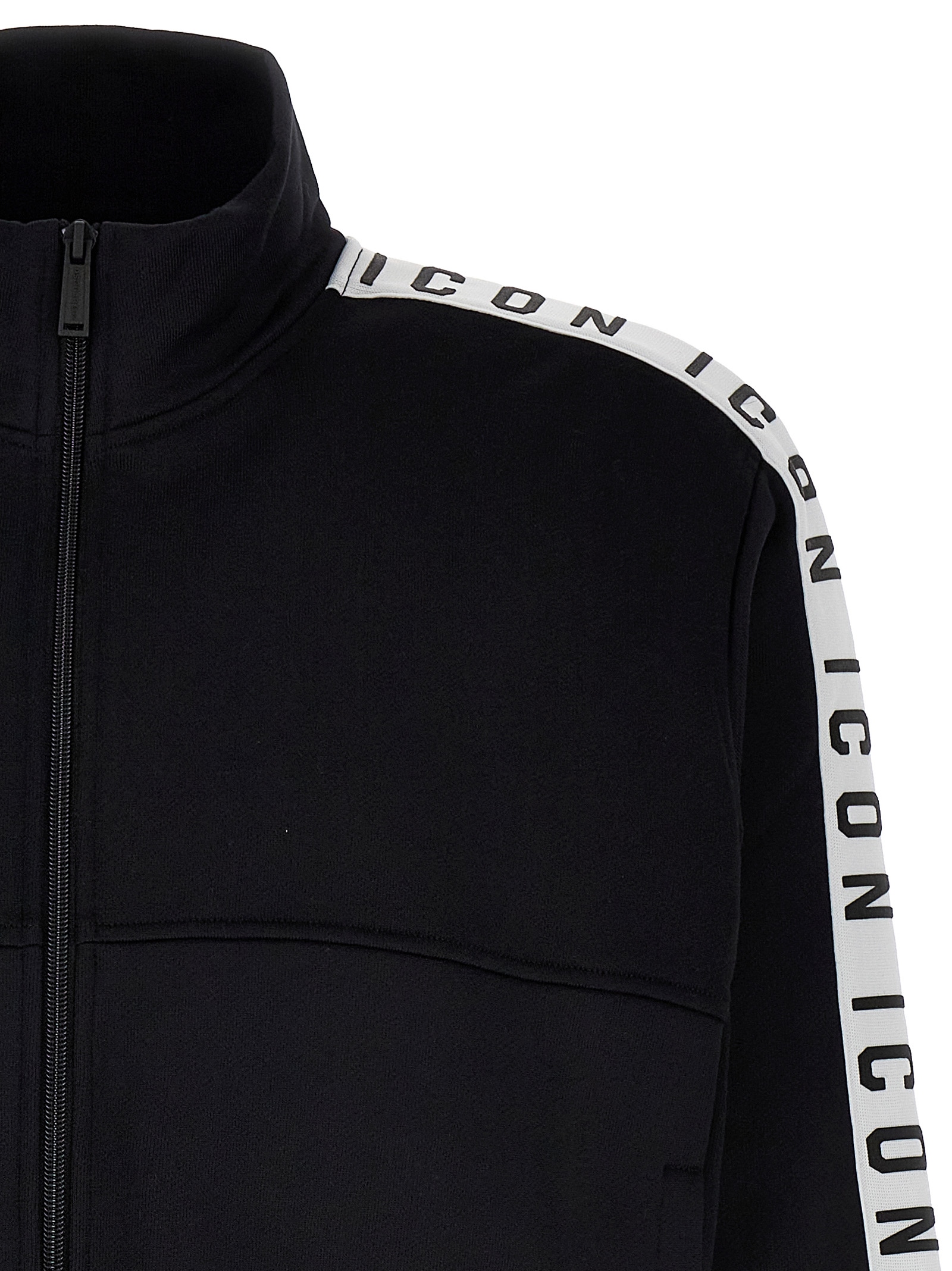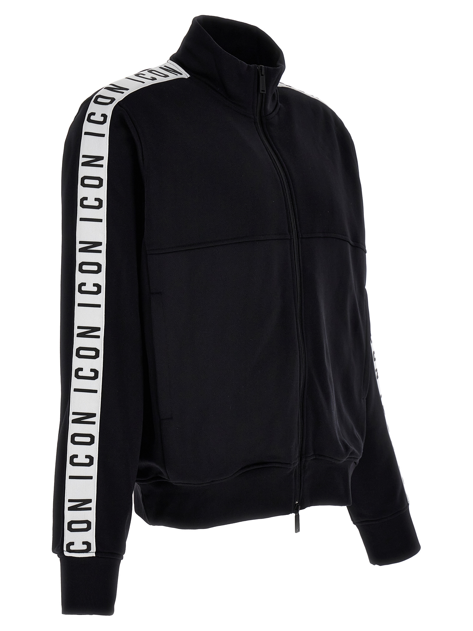 Dean Sport sweater in cotton blend with contrasting logo bands on the sleeves, zipper closure, pockets, and long cuffed sleeves.