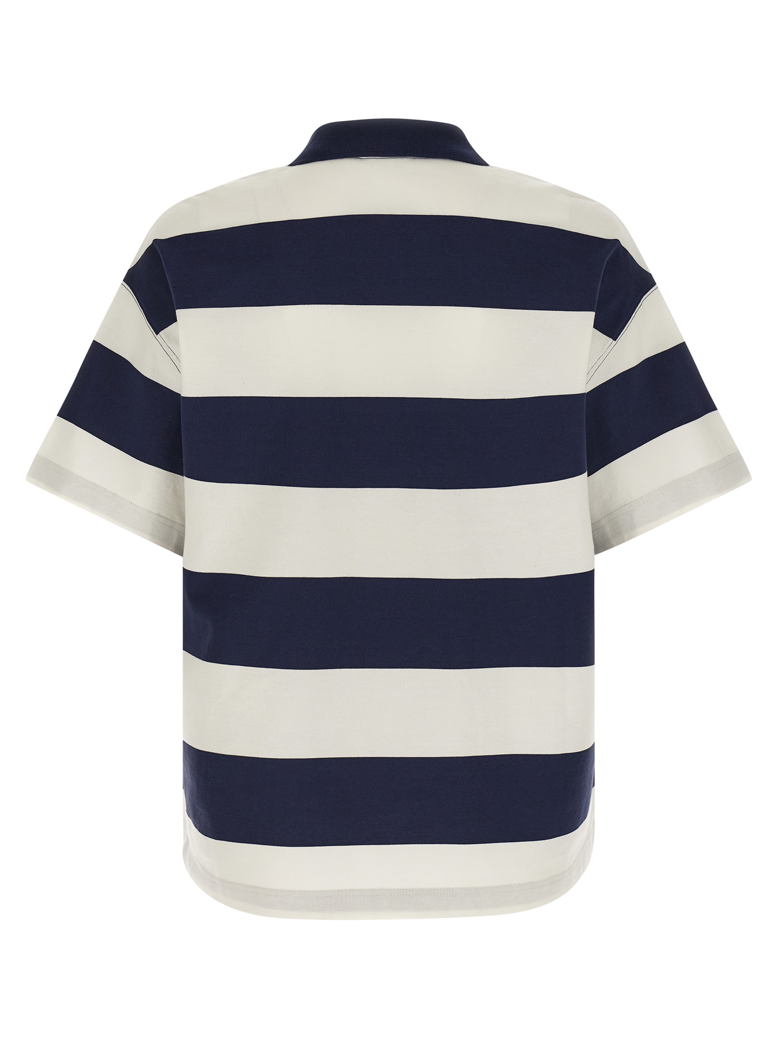 ‘Delray’ striped cotton jersey polo shirt with front logo embroidery, collar and buttons, short sleeves with dropped shoulders.