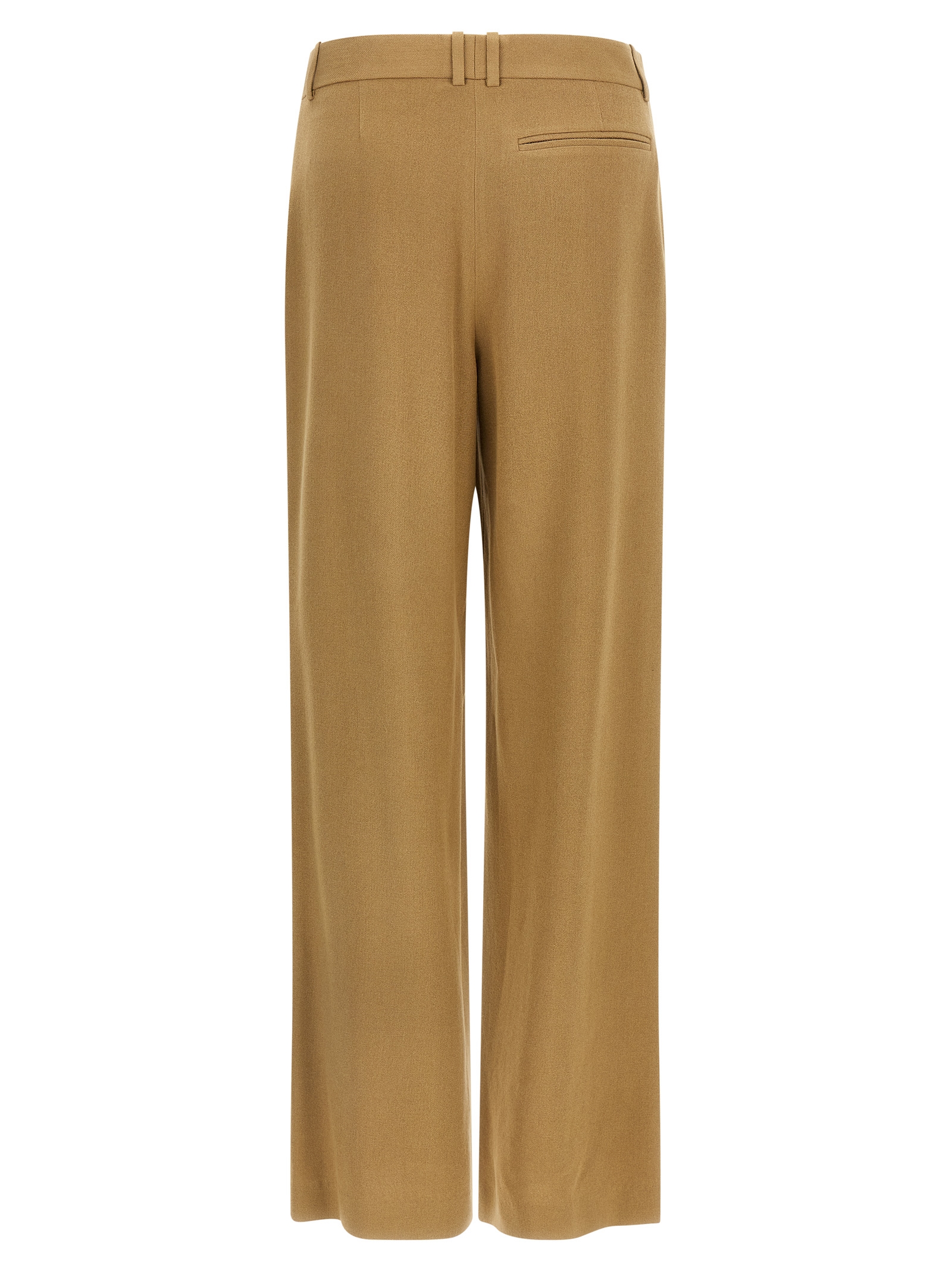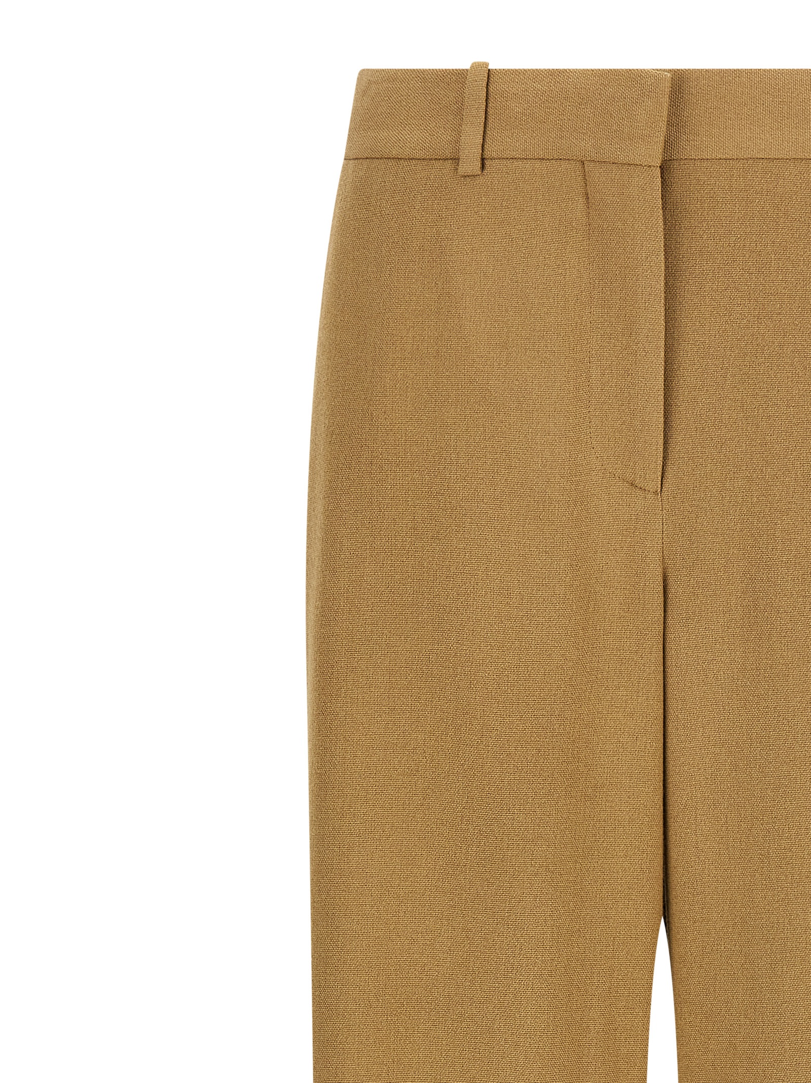 ‘Dender’ trousers in smooth wool gabardine of medium weight, sartorial model, low waist, wide and straight leg, stretched pleat, zip hook and front button closure, pockets.
