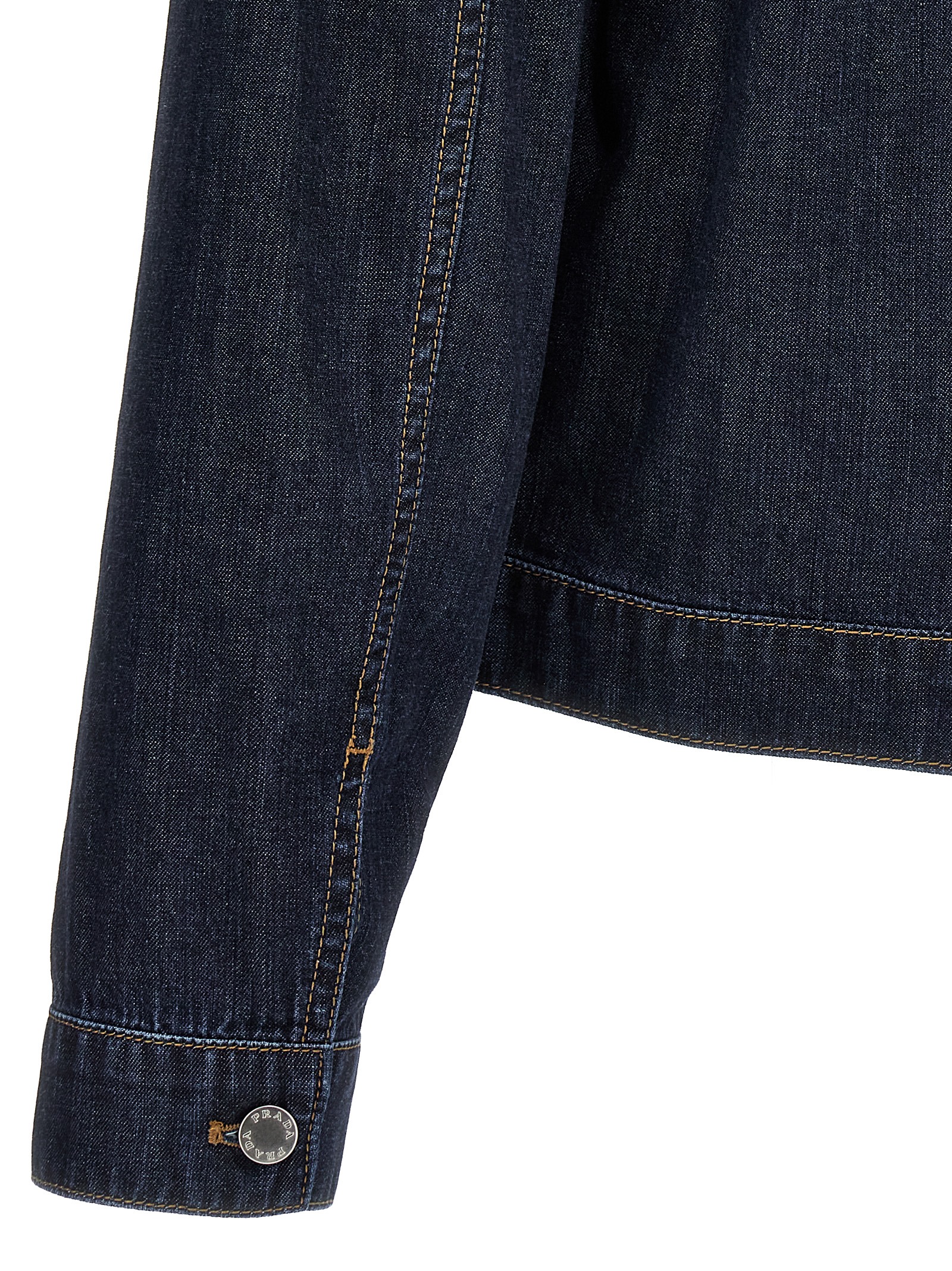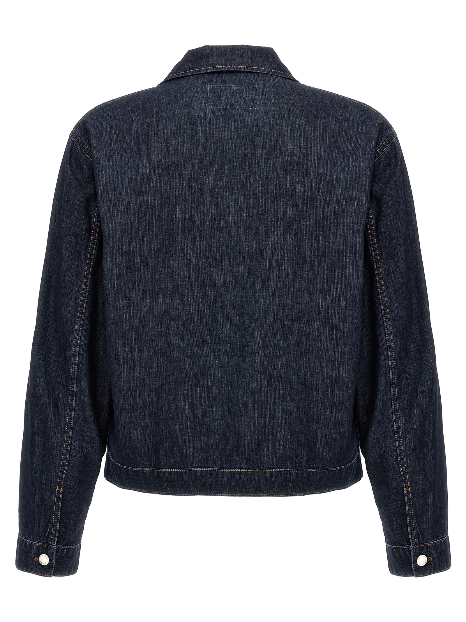 Cotton denim jacket with zip closure, pockets, triangle logo in enameled metal, long cuffed sleeves.