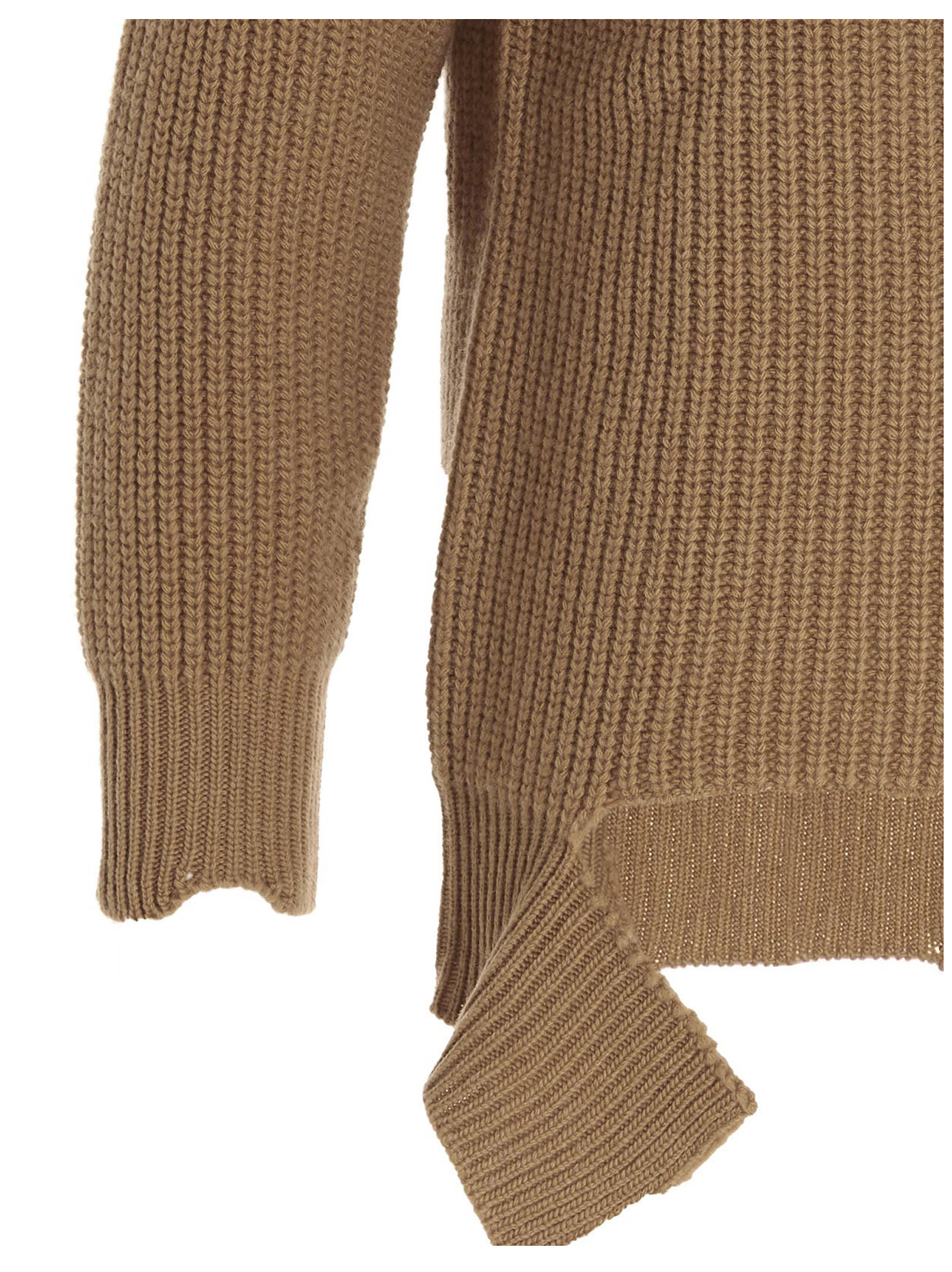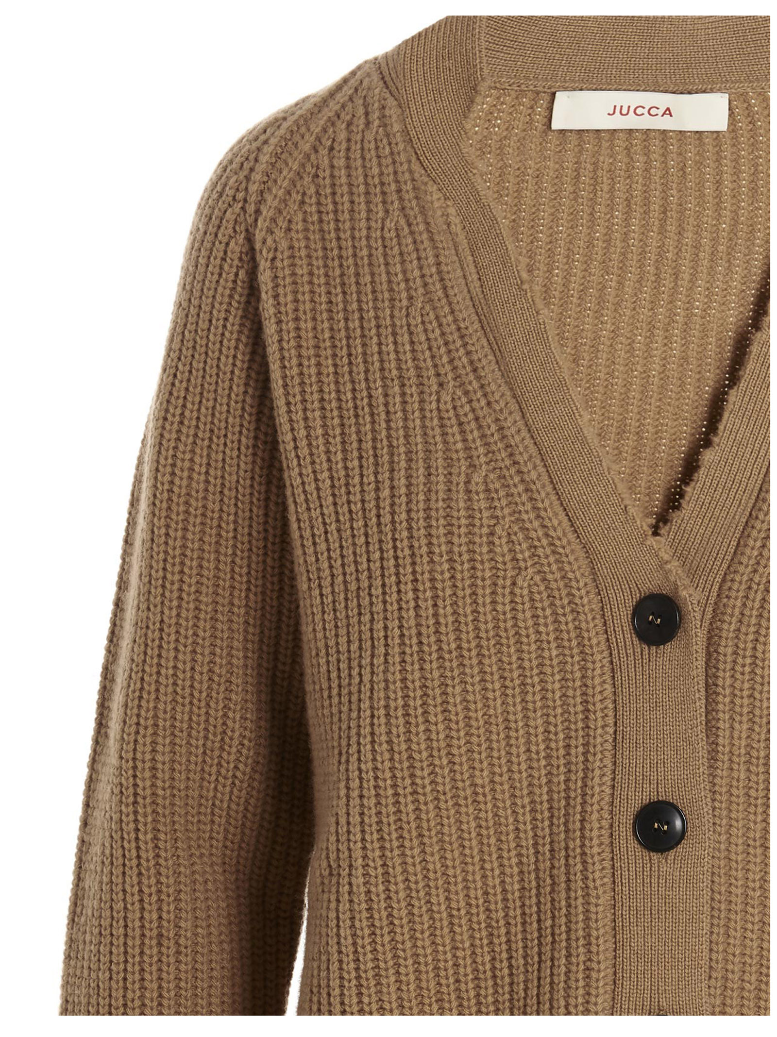 Wool cardigan with long sleeves, button closure, destroyed details and V-neck.