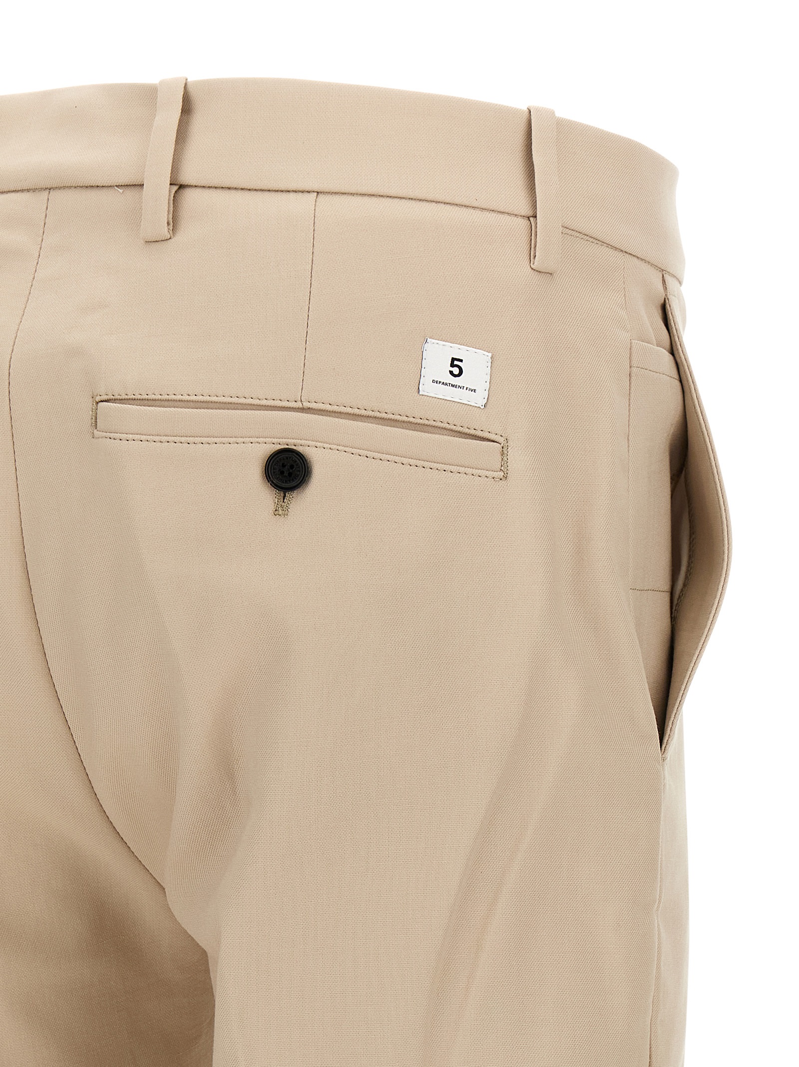 ‘Destynai’ cotton chinos, low waist, straight leg, stretched pleat, zip hook and front button closure, pockets, turn-up at the hem.