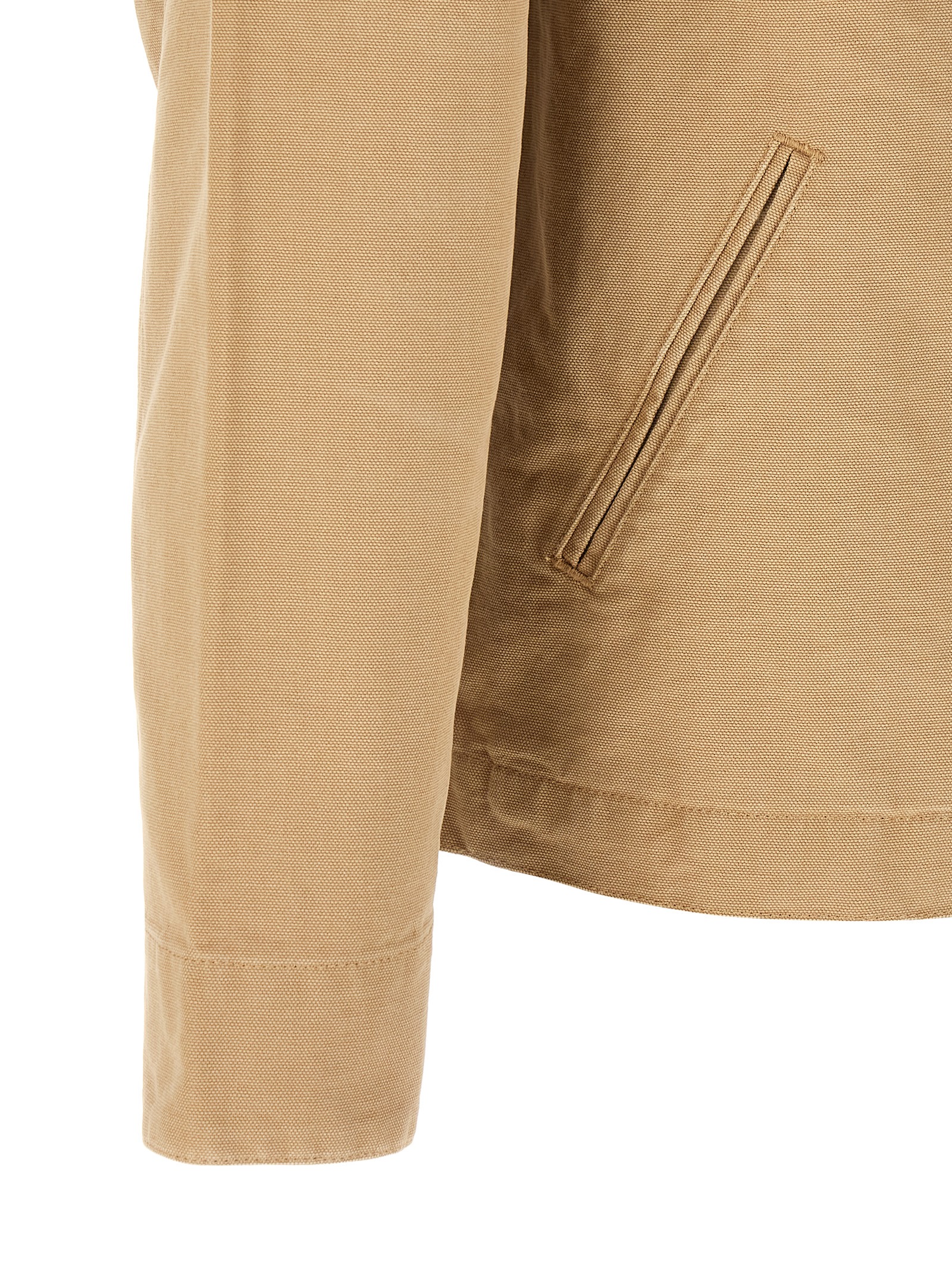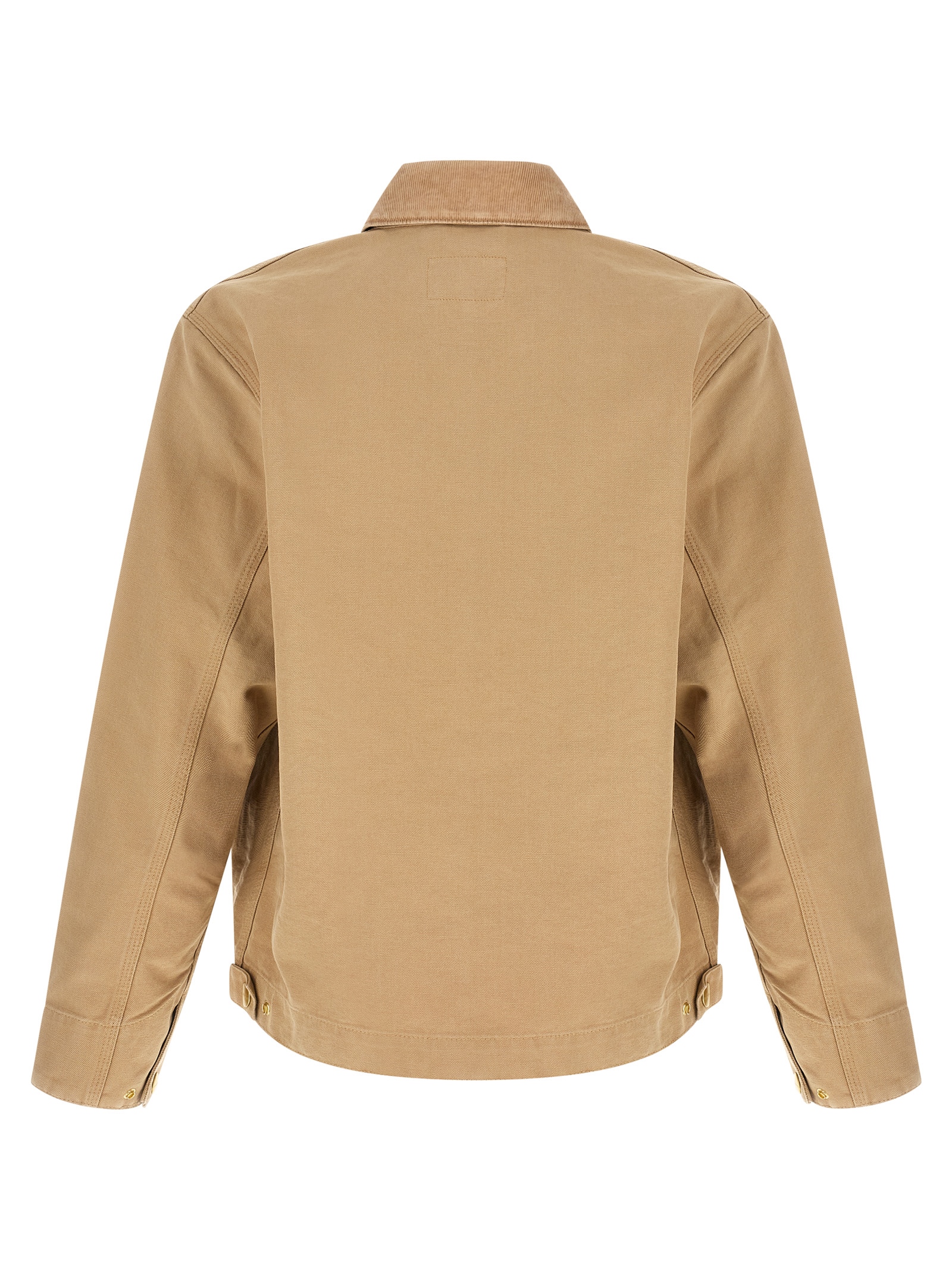 ‘Detroit’ jacket in sturdy Dearborn canvas with lining, logo patch and front zip closure, tone-on-tone corduroy collar, pockets, long sleeves with adjustable cuffs, unlined.
