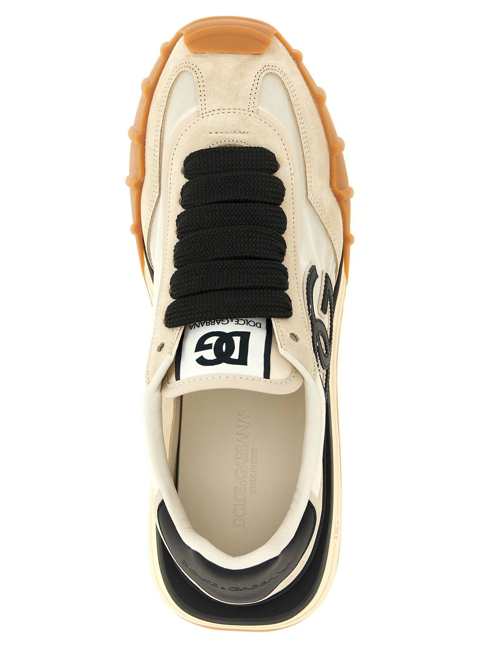 ‘DG Athletic’ suede and canvas sneakers with contrasting smooth leather details, side logo, embossed logo on the heel, lace-up closure, felt insole, thermoformed leather wrapped foam fussbett insole, rubber, Phylon and TPU sole.