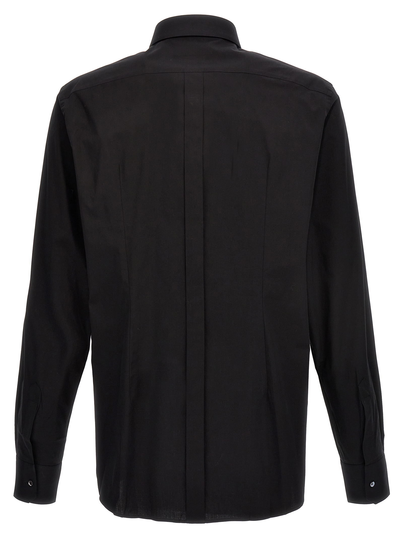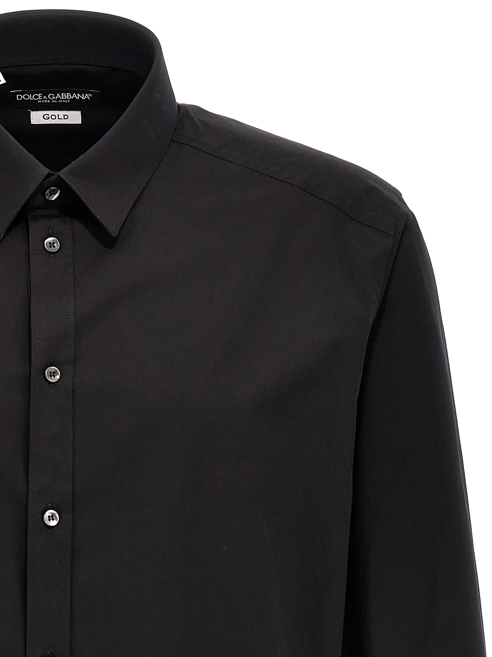 DG Essential stretch cotton shirt with button closure, long cuffed sleeves.