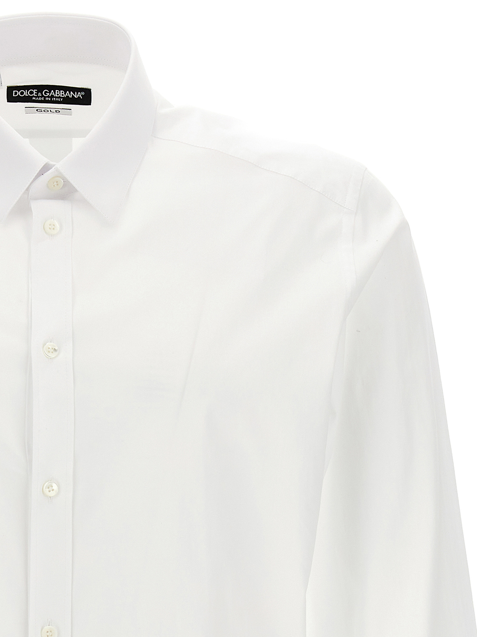 DG Essential shirt in stretch cotton with gold label inside, button closure, and long sleeves with cuffs.