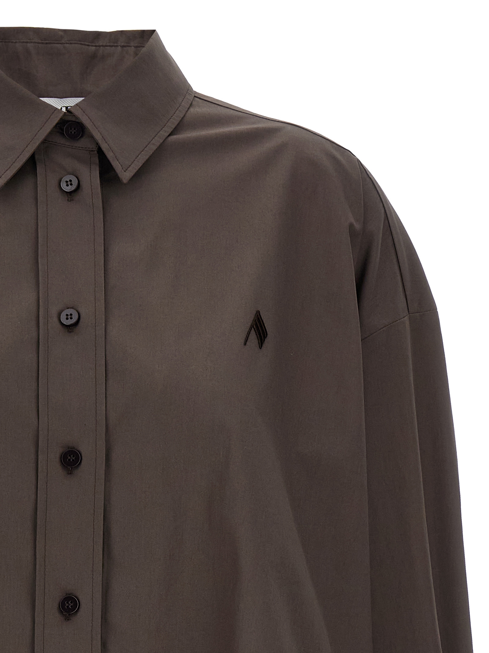 ‘Diana’ cotton poplin shirt with tone-on-tone logo embroidery and front button closure, long cuffed sleeves, contoured front split.