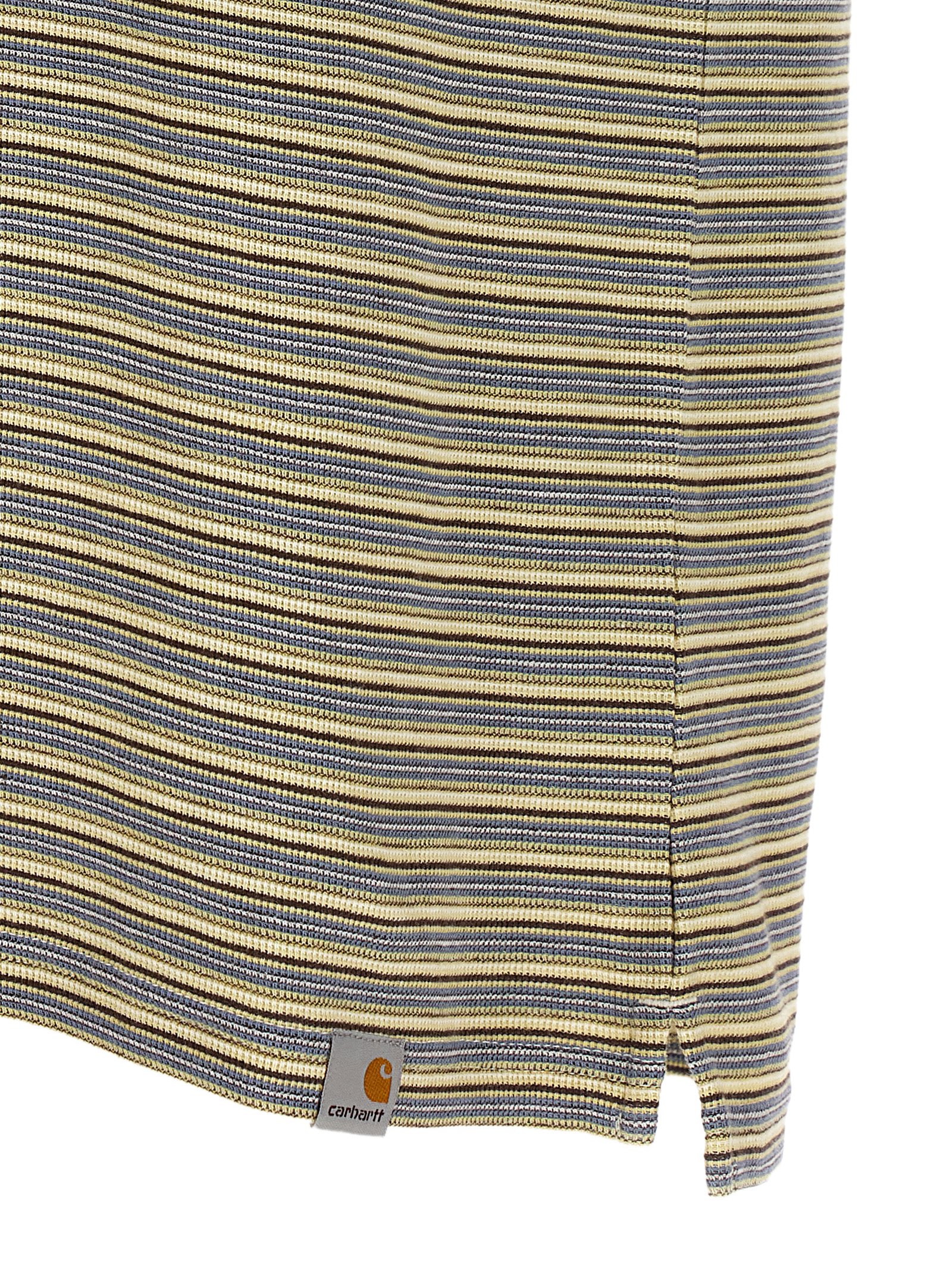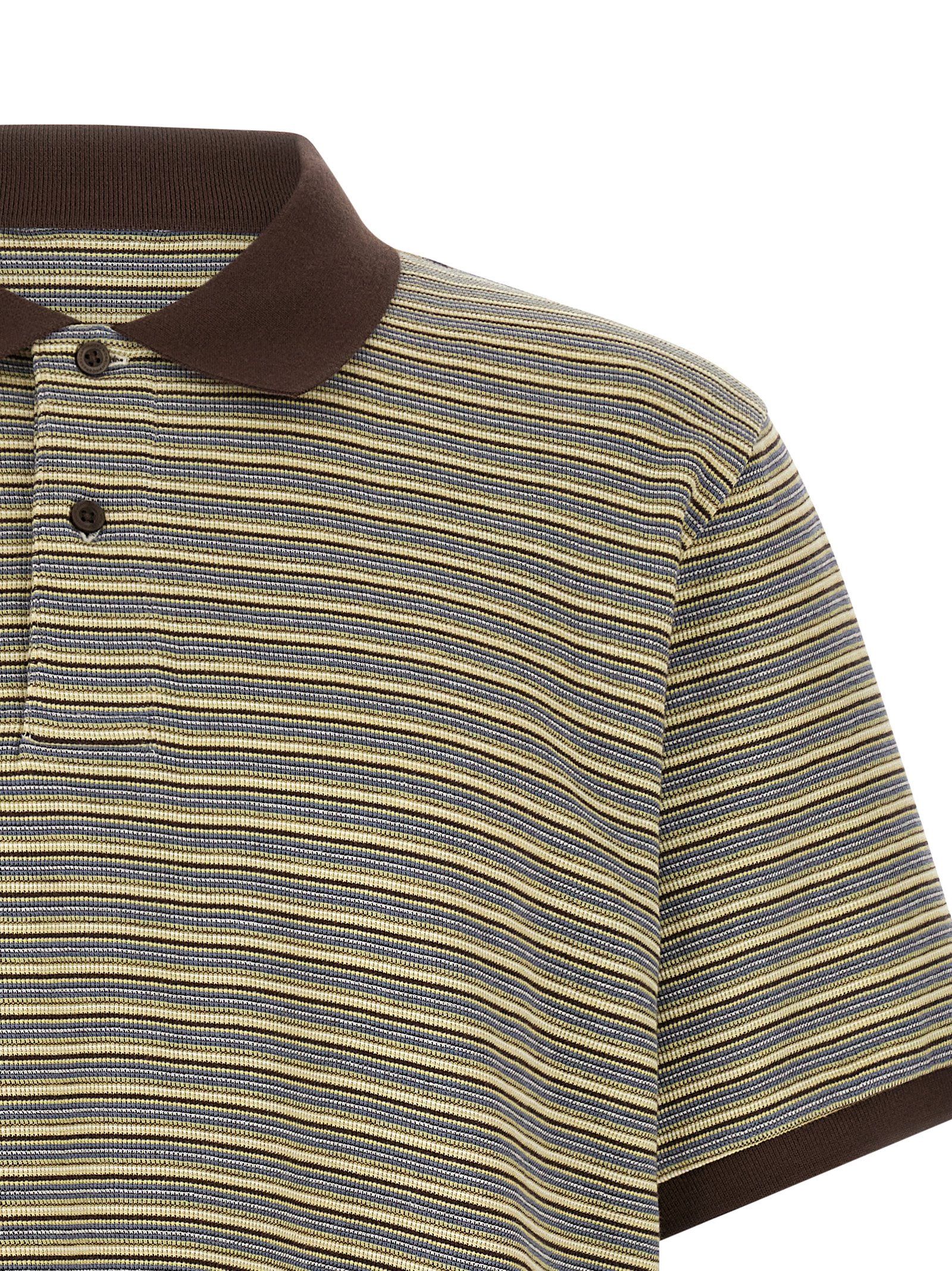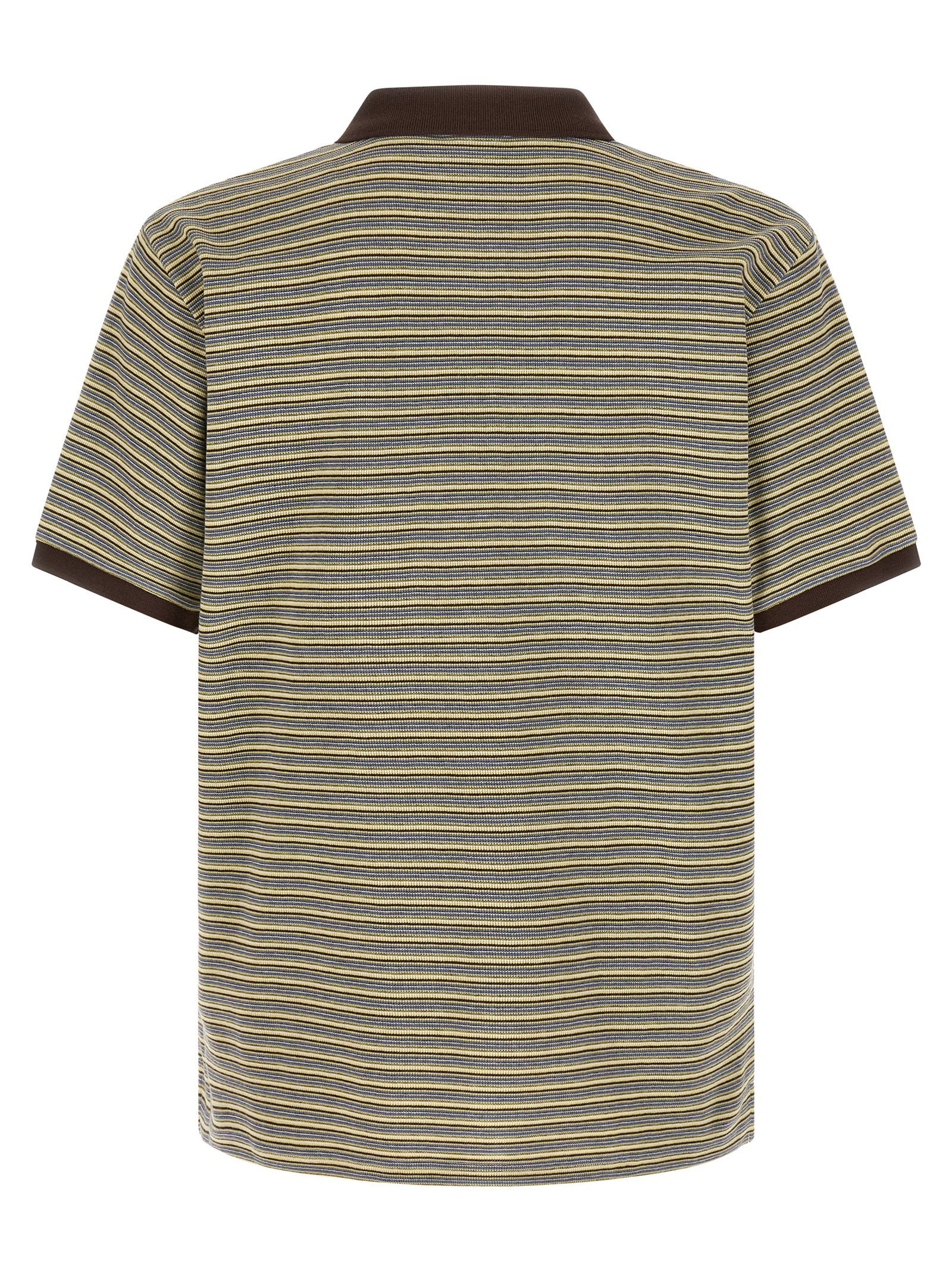 ‘Dion’ cotton polo shirt with textured honeycomb patterned horizontal stripes with contrasting solid color details, collar and buttons, front logo patch, short sleeves with cuffs and dropped shoulder, side splits.