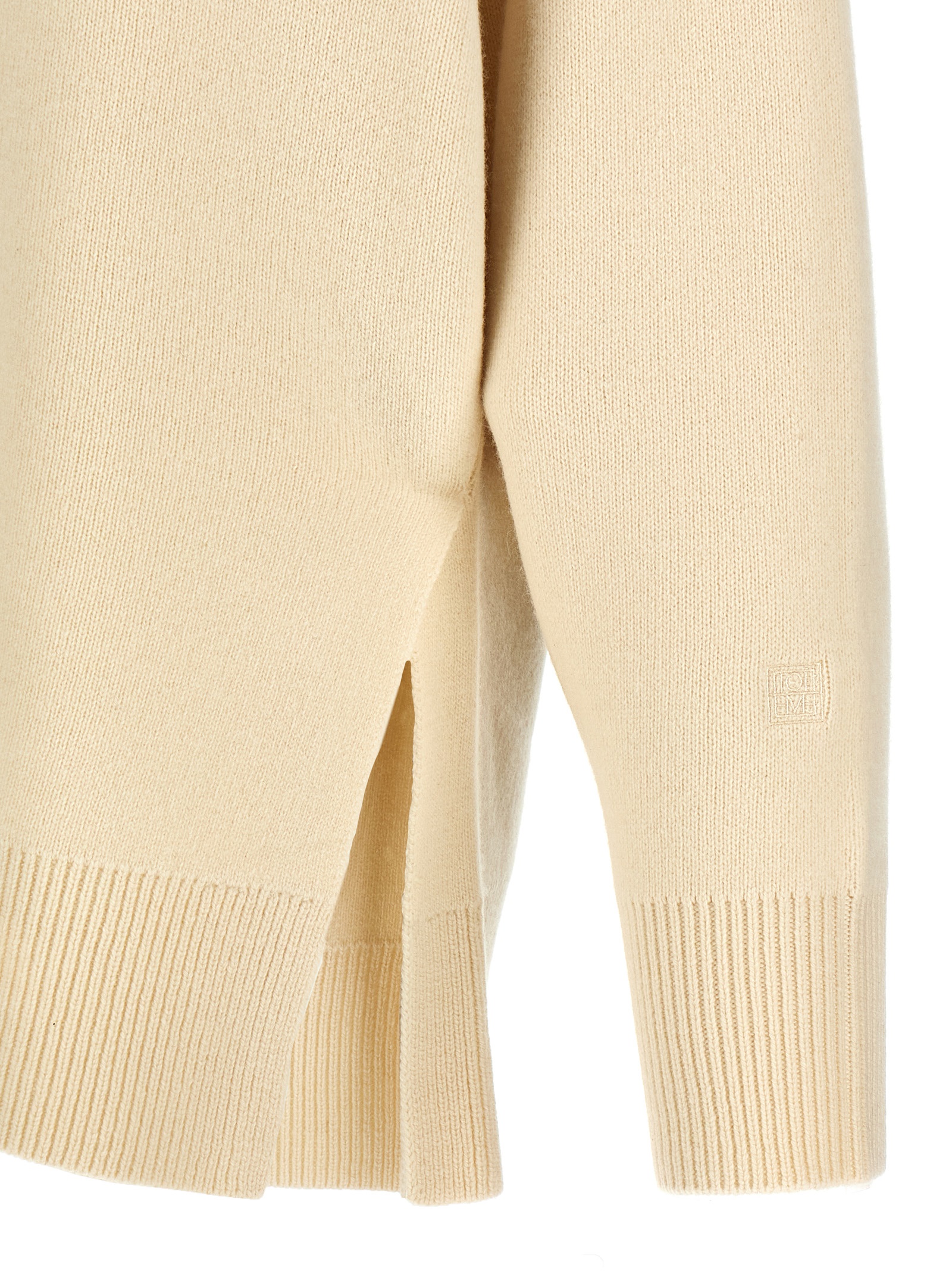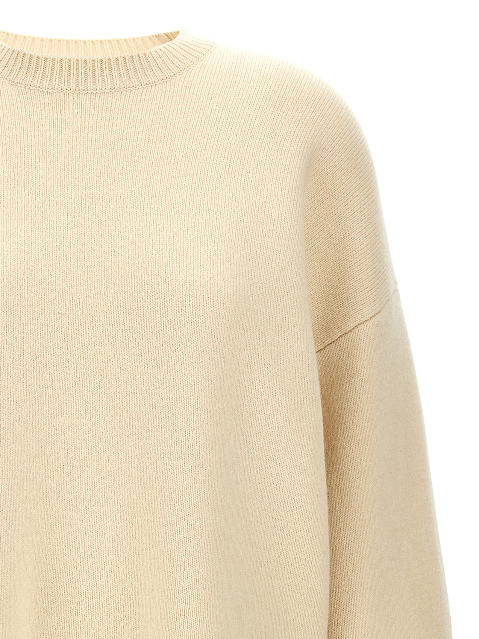 ‘Double-Knit’ wool and cashmere blend sweater with crew neck, long sleeves with dropped shoulder cuffs, tone-on-tone logo embroidery, side slits.