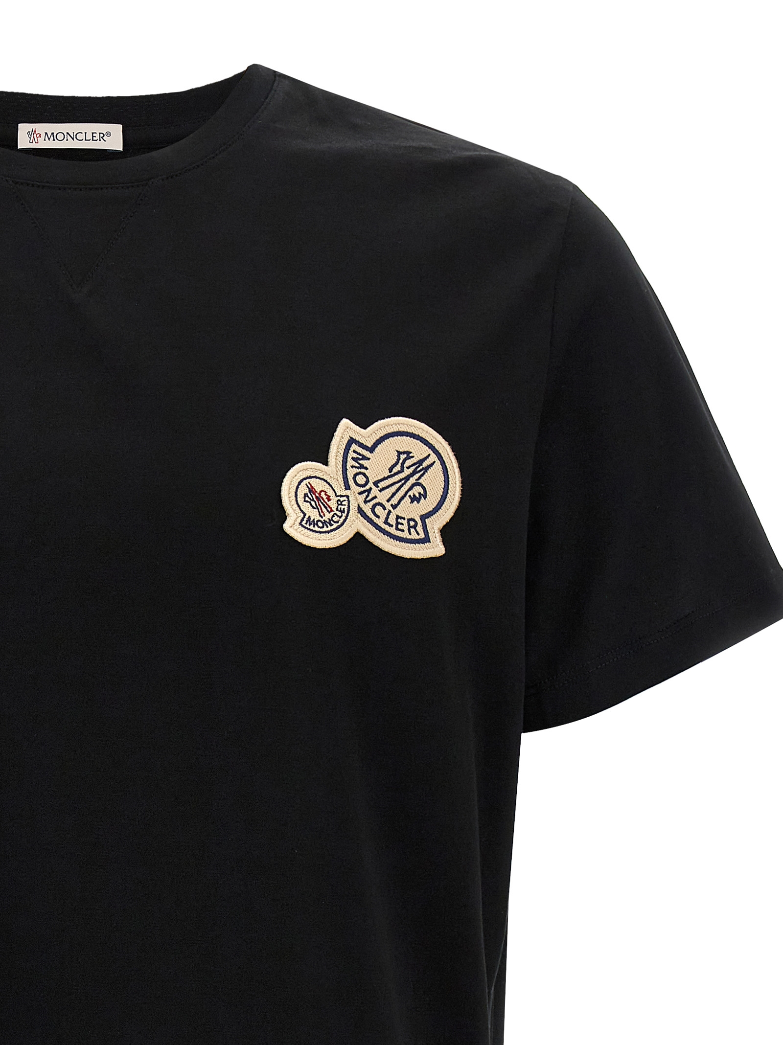 Cotton jersey T-shirt with double front logo patch, crew neck, short sleeves.