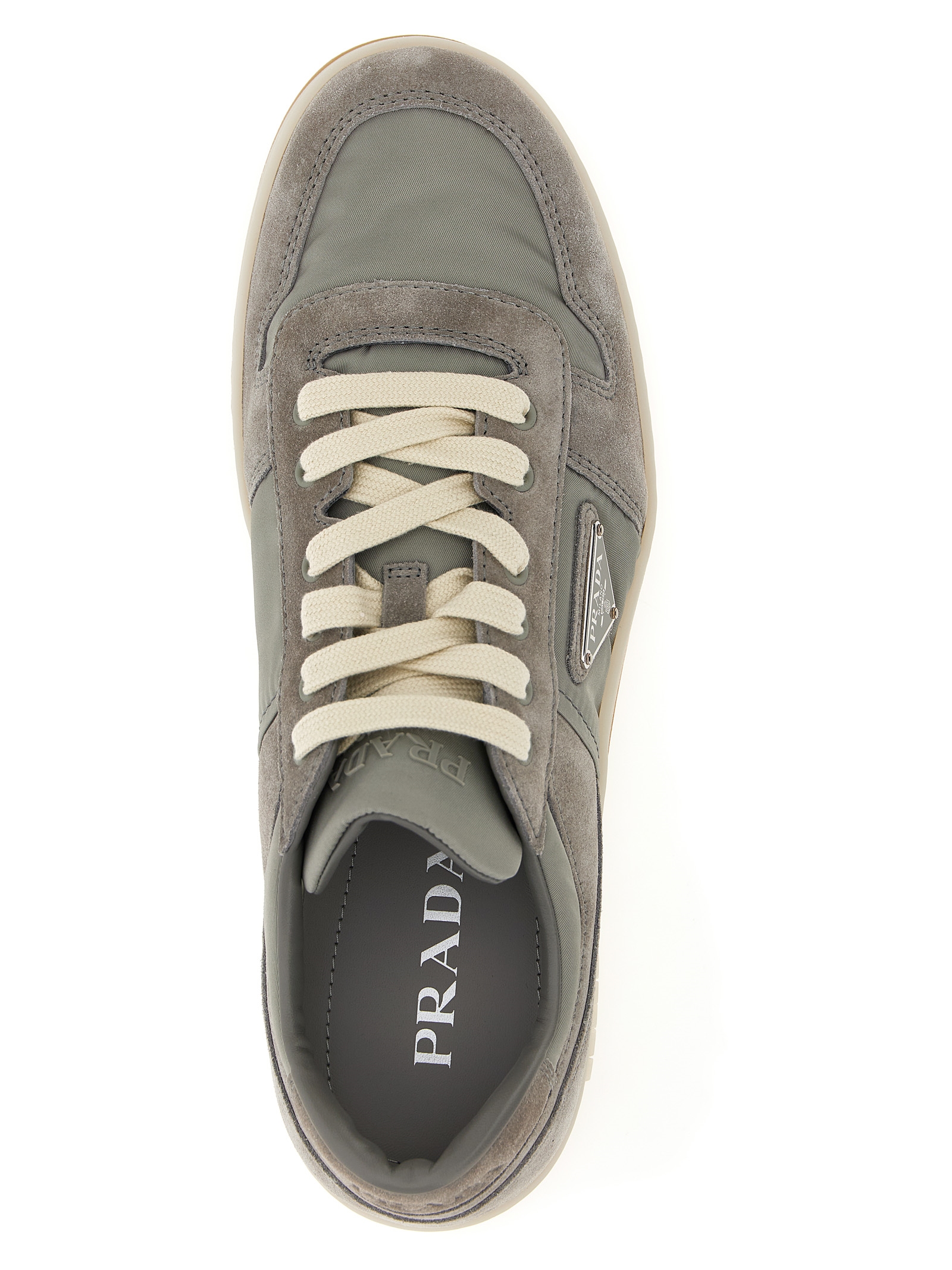 ‘Downtown’ sneakers in Re-Nylon and suede, triangle logo in enameled metal on the side, lace-up closure, rubber sole.