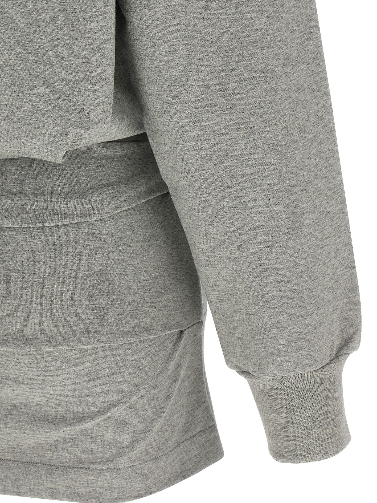 Brushed cotton dress, oversized sweatshirt and draped mini skirt, tone-on-tone metal logo on the front, crew neck, long sleeves with cuffs.