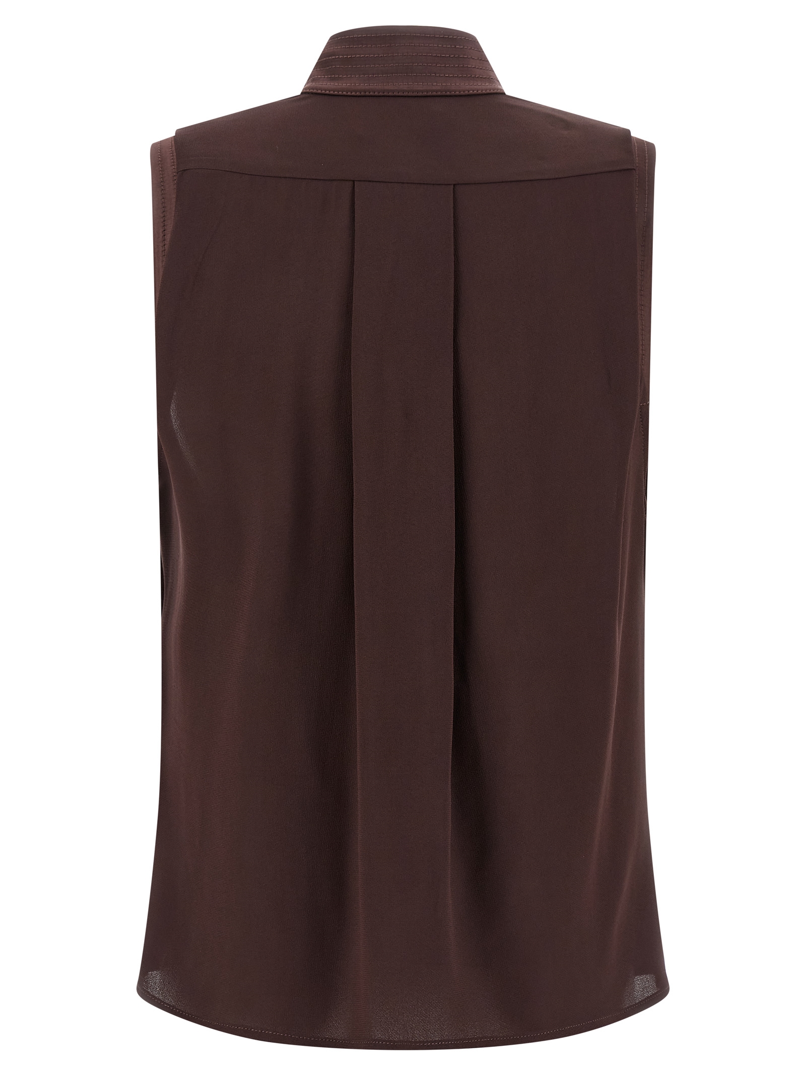 Viscose top, high neck with front snap button closure, wide front draping.