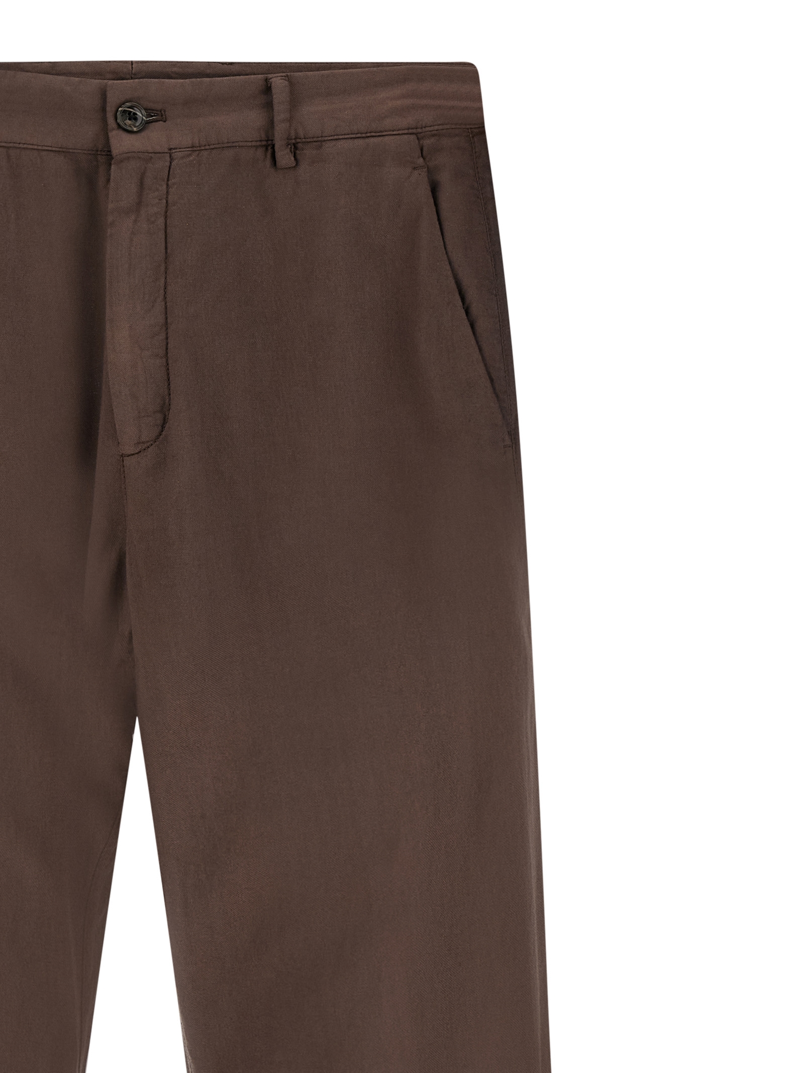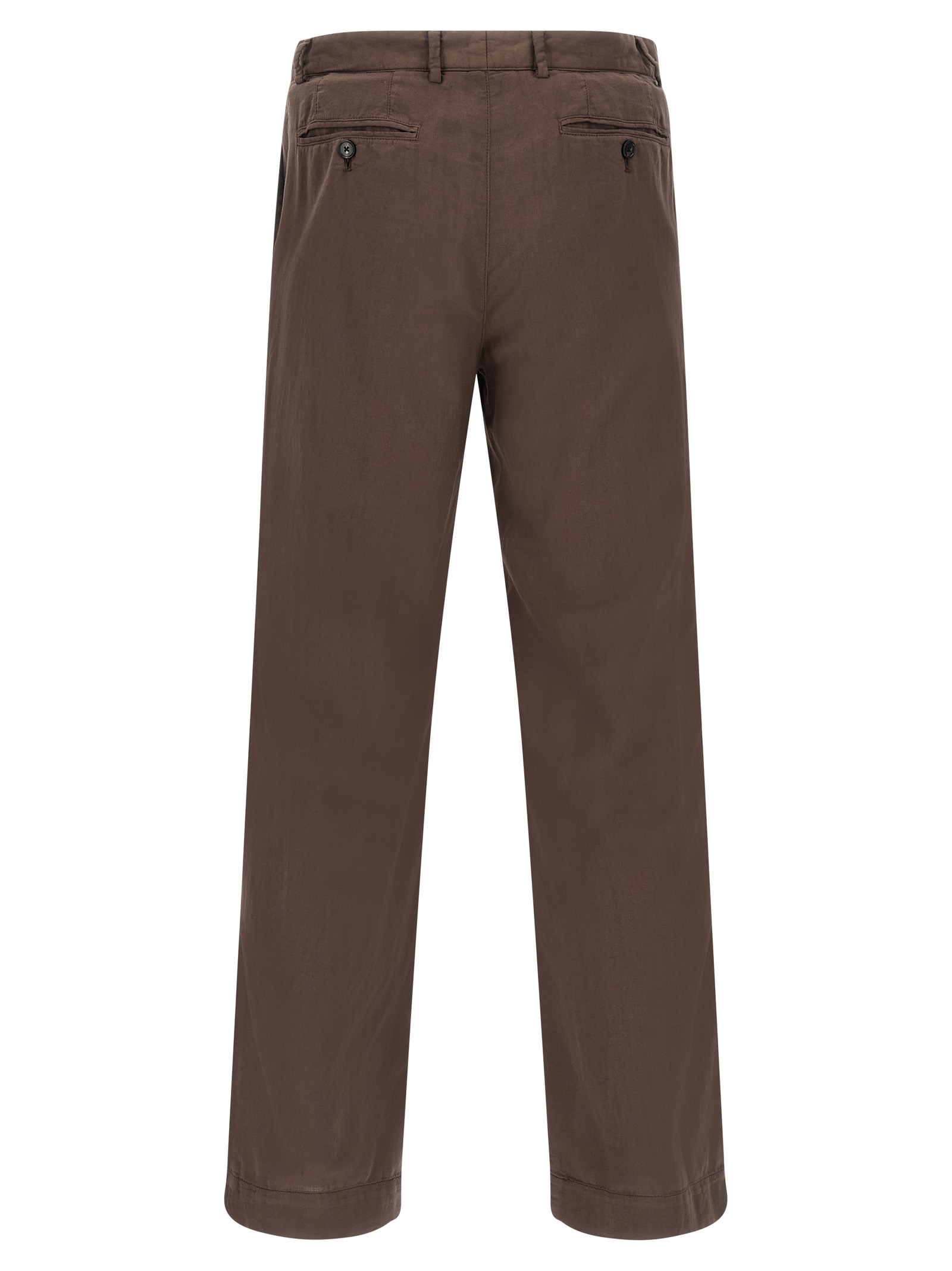 ‘Drift’ light cotton trousers, wide and straight leg, regular waist, front zip and button closure, front French pockets, back welt pockets.