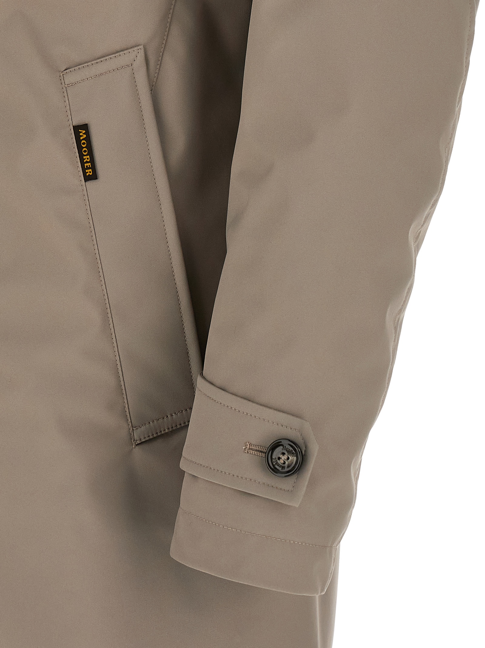 ‘Duca’ jacket in water-repellent technical fabric, standing collar with removable hood, front zip closure, pockets, long sleeves with adjustable cuffs.