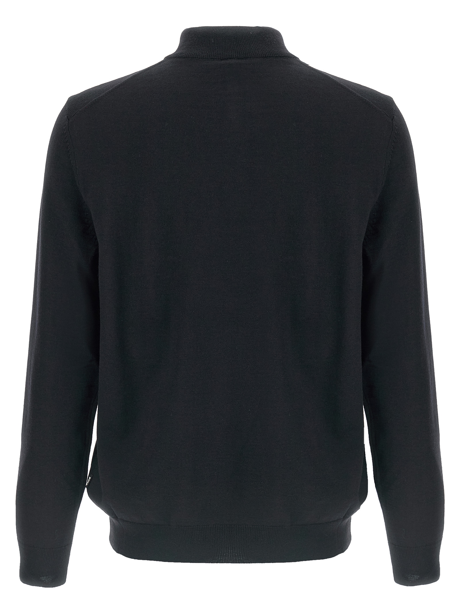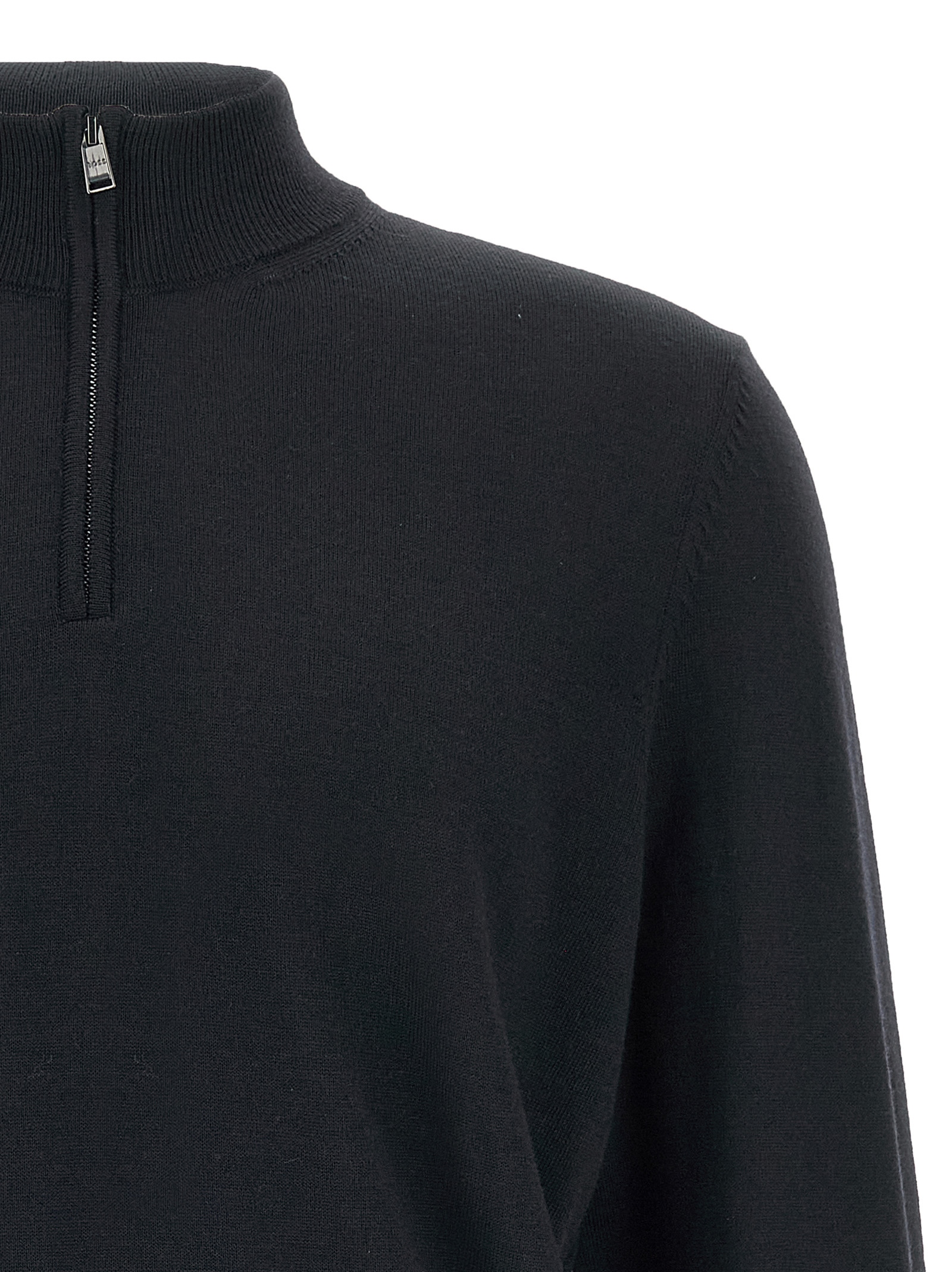 Virgin wool ‘Ebenji’ sweater with half zip, long cuffed sleeves.