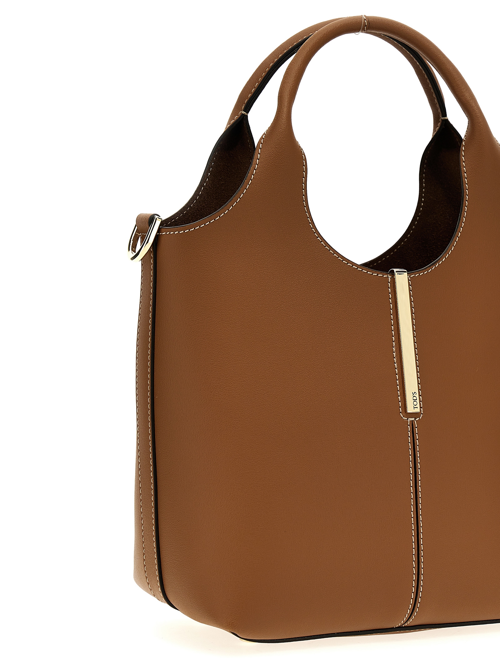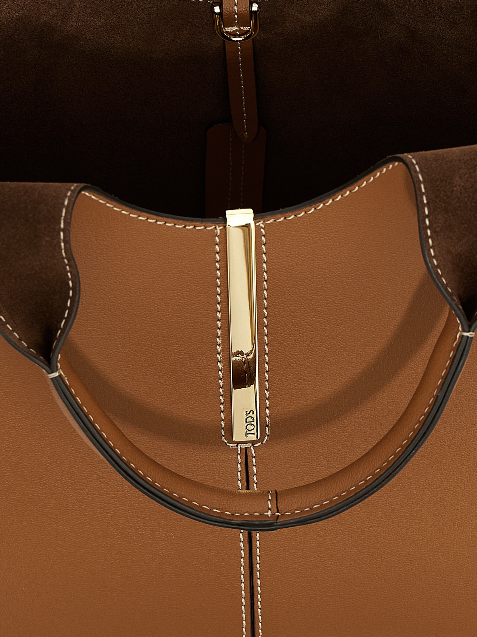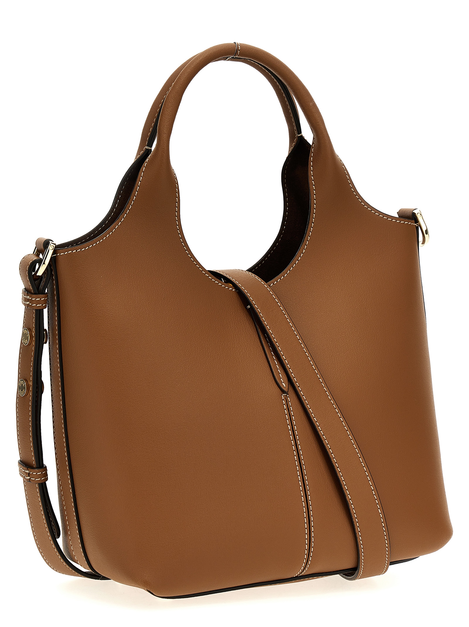 Mini leather EBR shopper bag with double handle, metal details, snap hook closure, adjustable and removable shoulder strap.