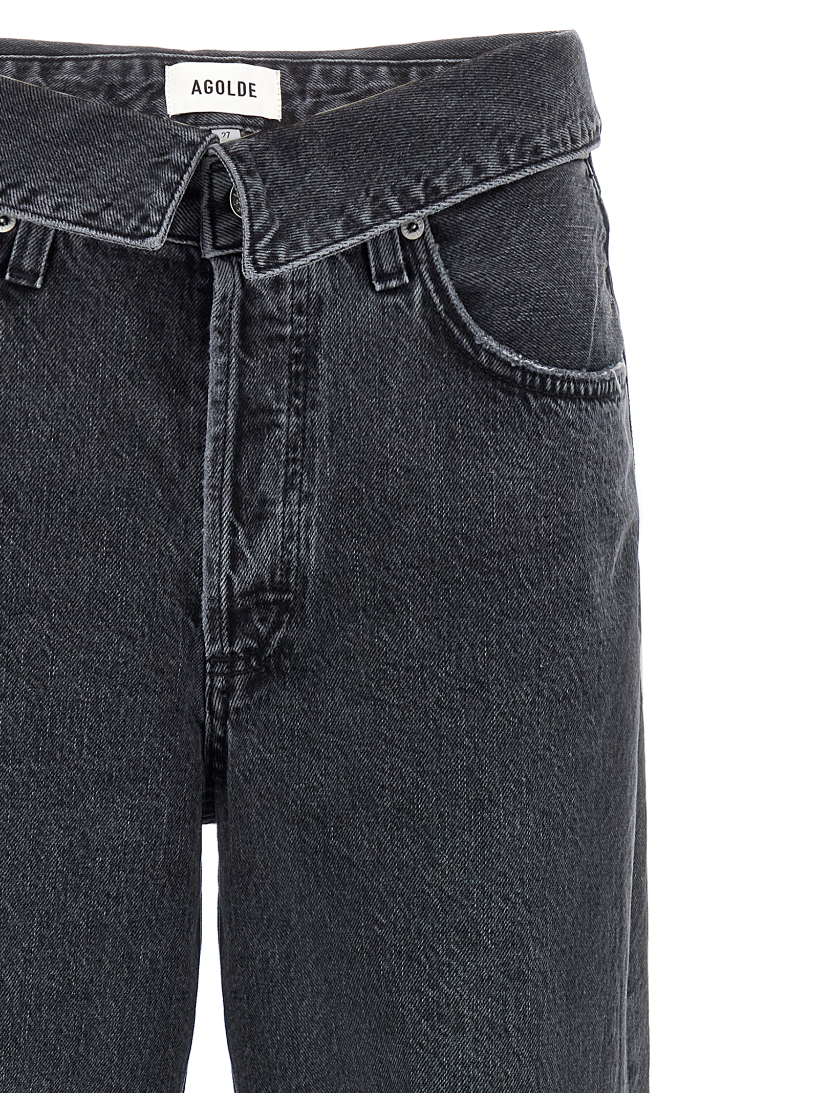 High-waisted jeans Echo in vintage-effect cotton denim with turn-up at the waist and a loose leg, front button closure and five pockets.
