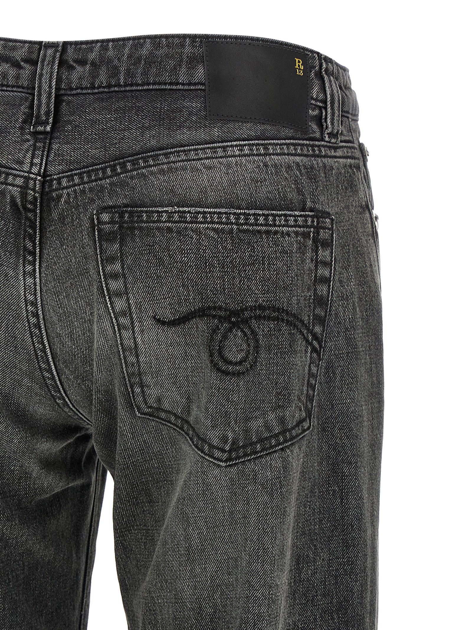 ‘Effie’ used-effect stonewashed cotton denim jeans, low waist, straight leg, front zip and button closure, five pockets, back logo tag.