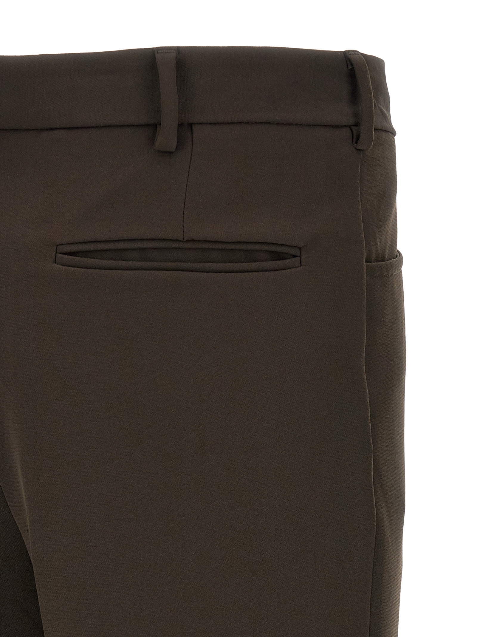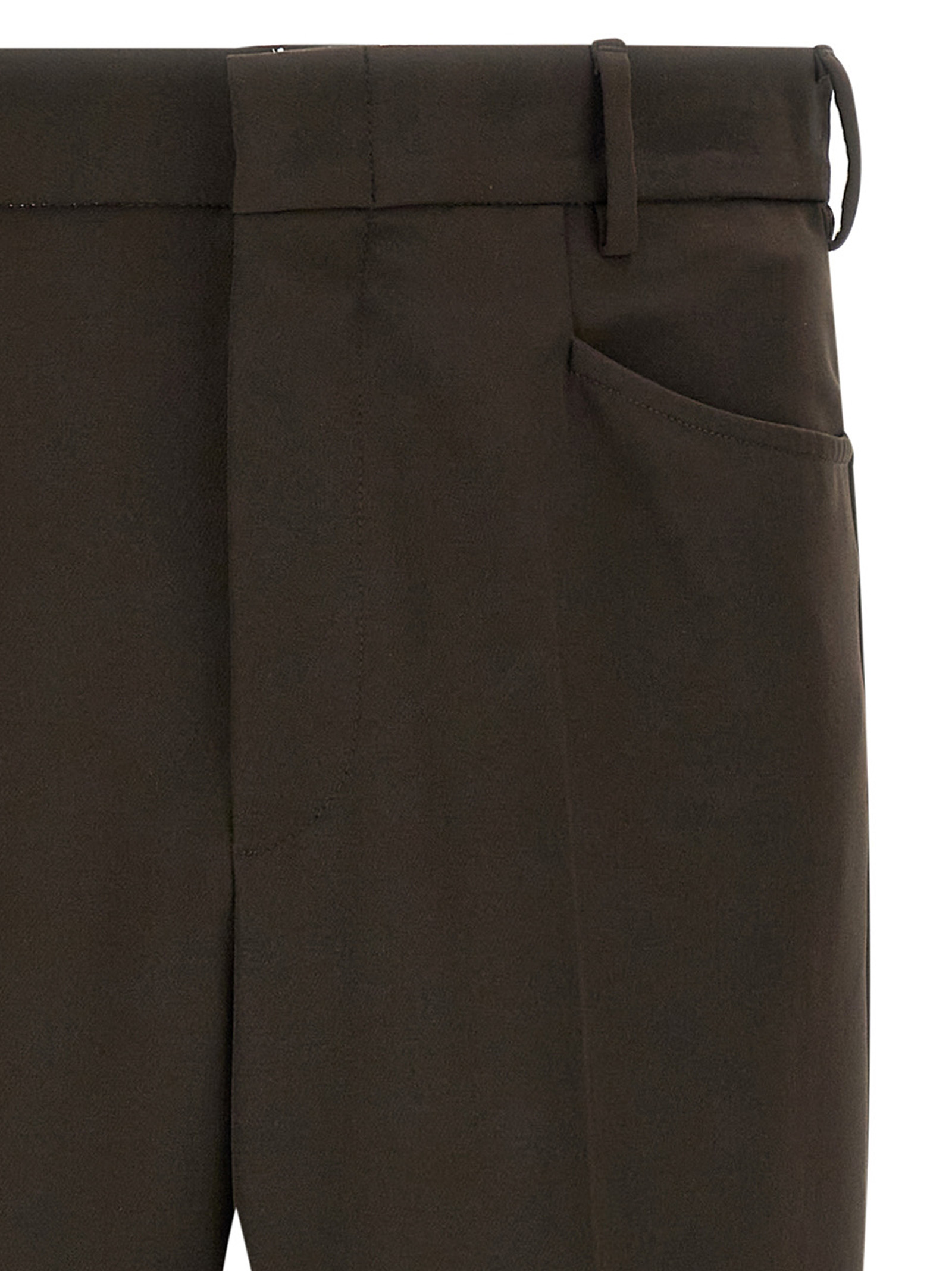 ‘El Niño’ trousers in fluid fabric with stretched pleat, straight leg, zip and hook closure on the front, welt pockets on the front and back.