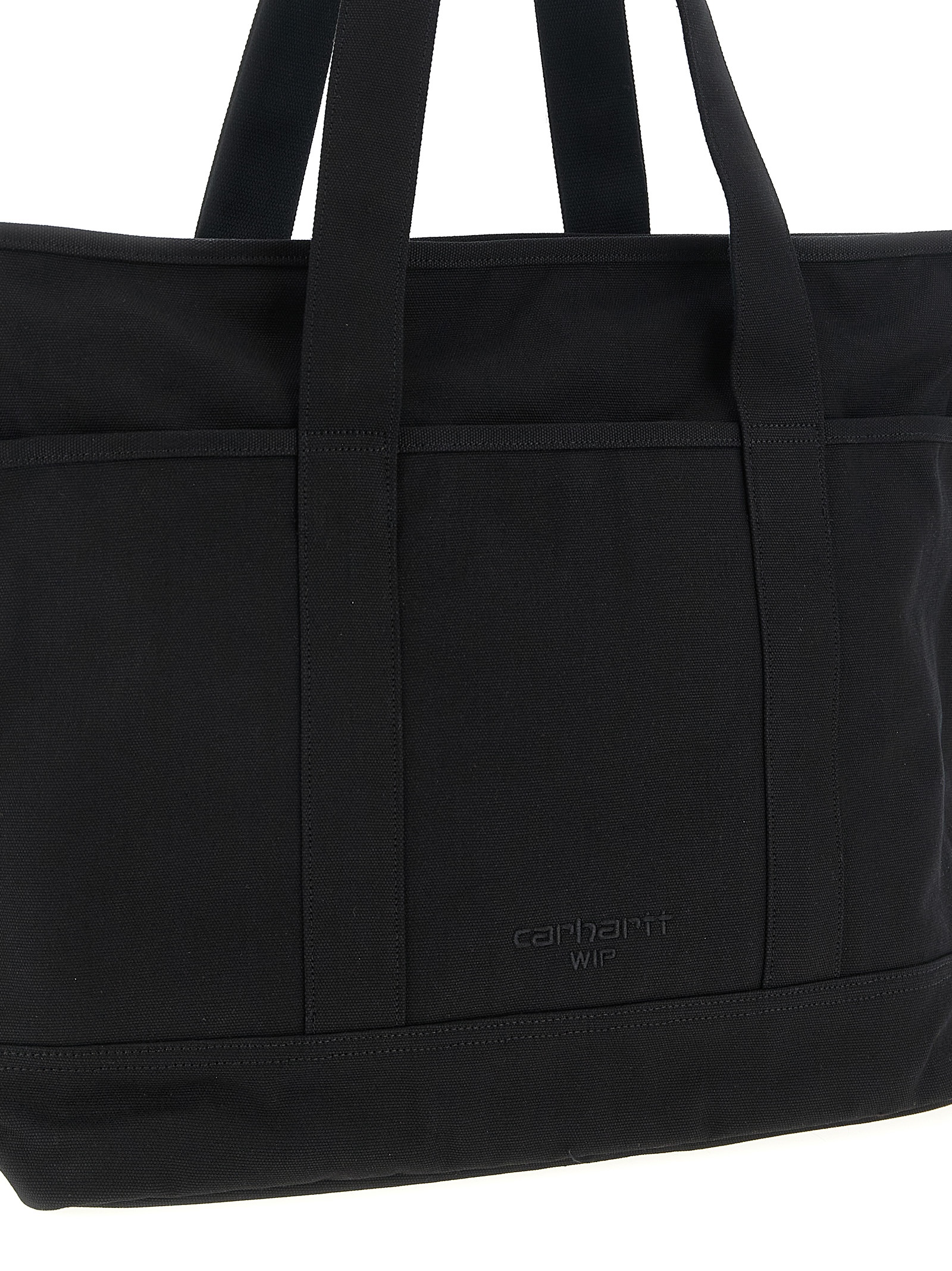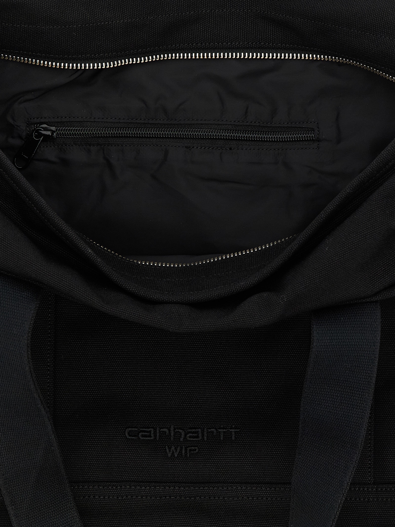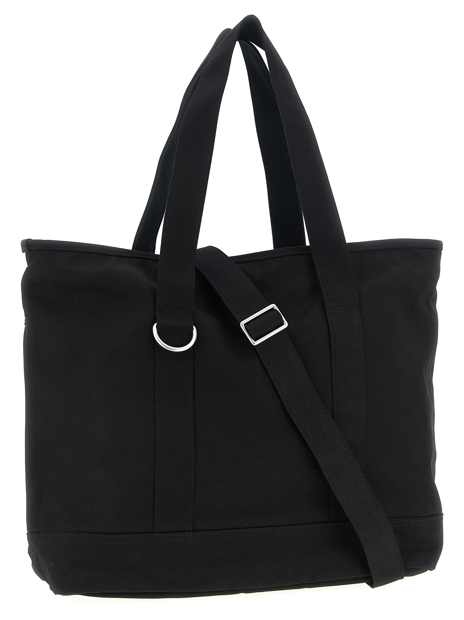 ‘Elford’ shopping bag in heavy cotton and polyester canvas, lined, tone-on-tone logo embroidery and front pockets, double fixed handle, top zip closure, adjustable shoulder strap.