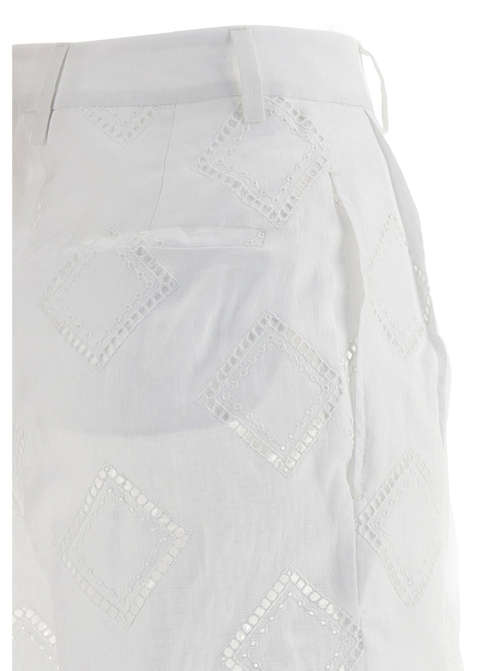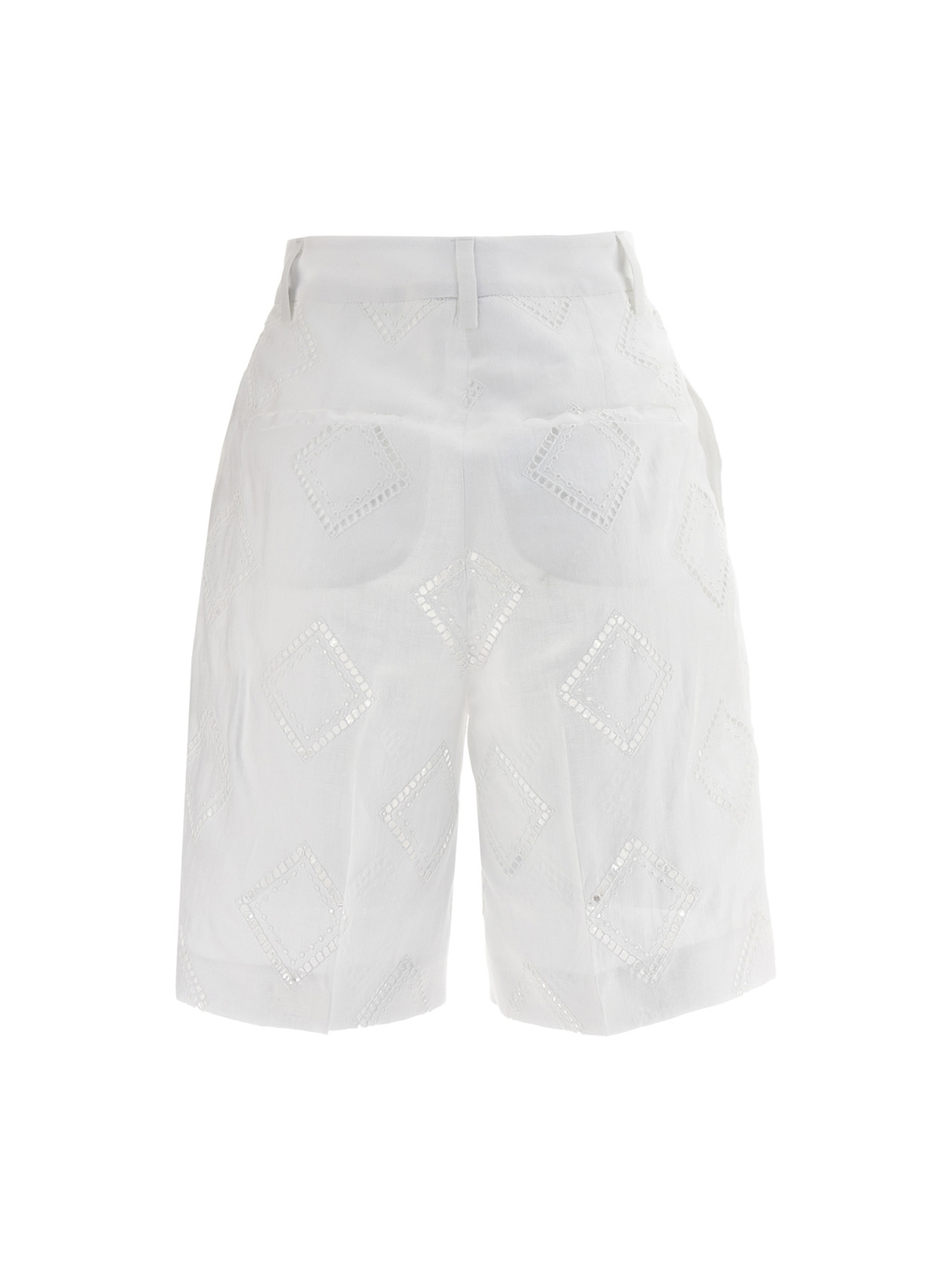 Embroidered linen bermuda shorts, with zip and button closure, pockets and front pleats.