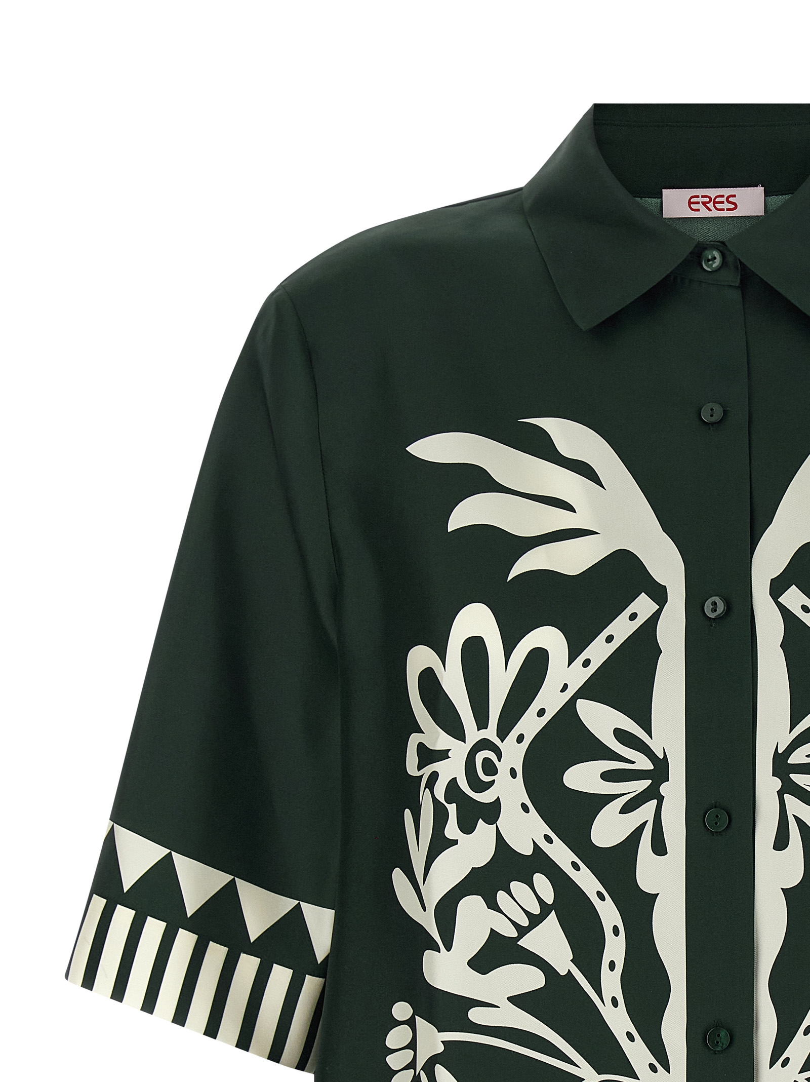 ‘Émeraude’ shirt in ‘Panama’ patterned silk twill, straight silhouette, front button closure, short sleeves.