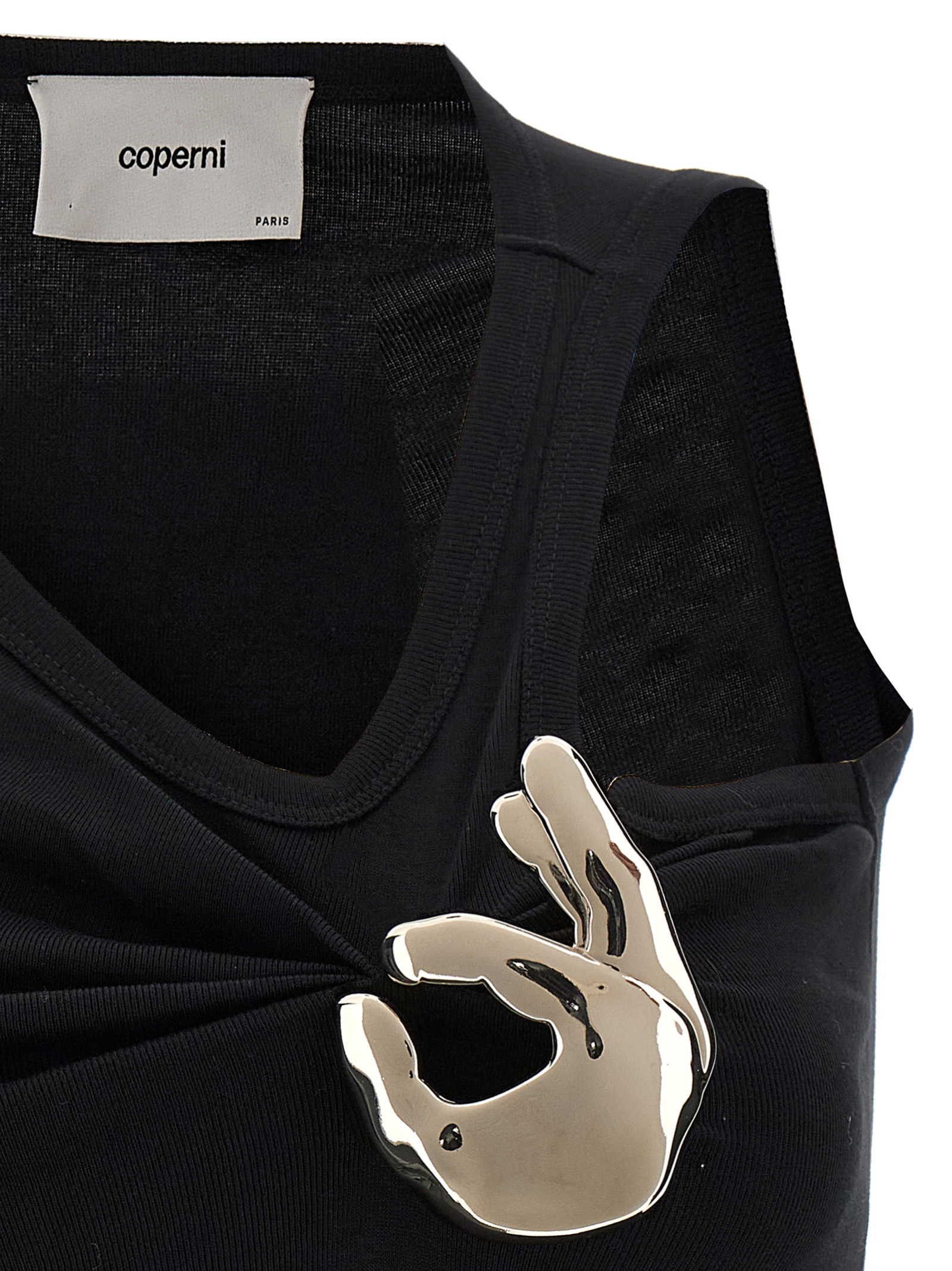 ‘Emoji’ sleeveless cotton tank top with metal application.