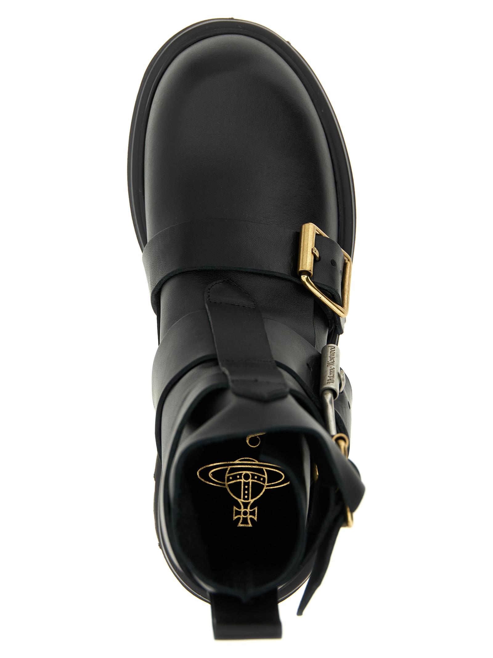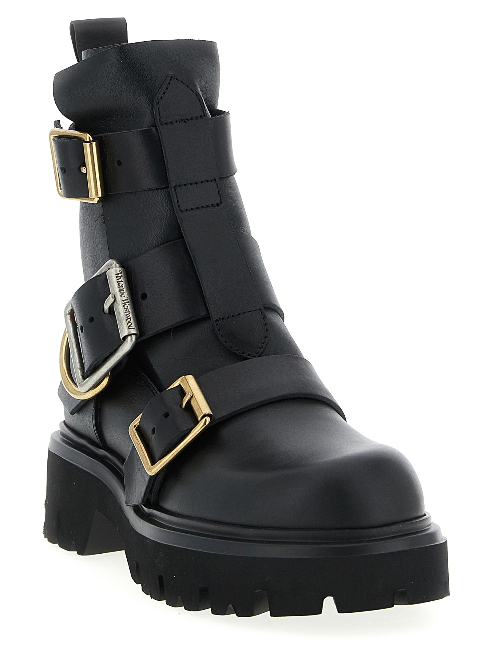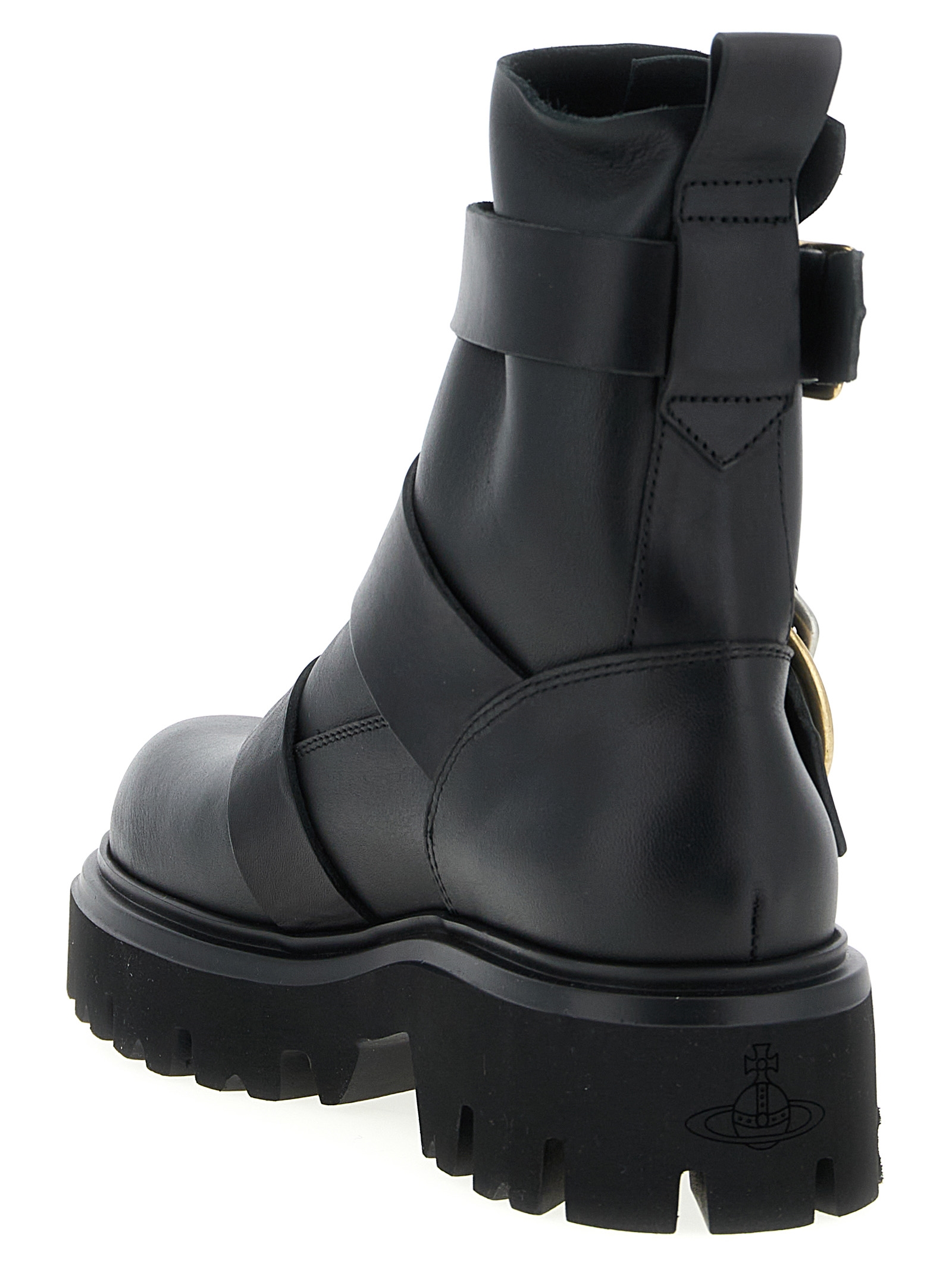 ‘Empire’ leather ankle boots, adjustable straps, rounded toe, rubber sole.