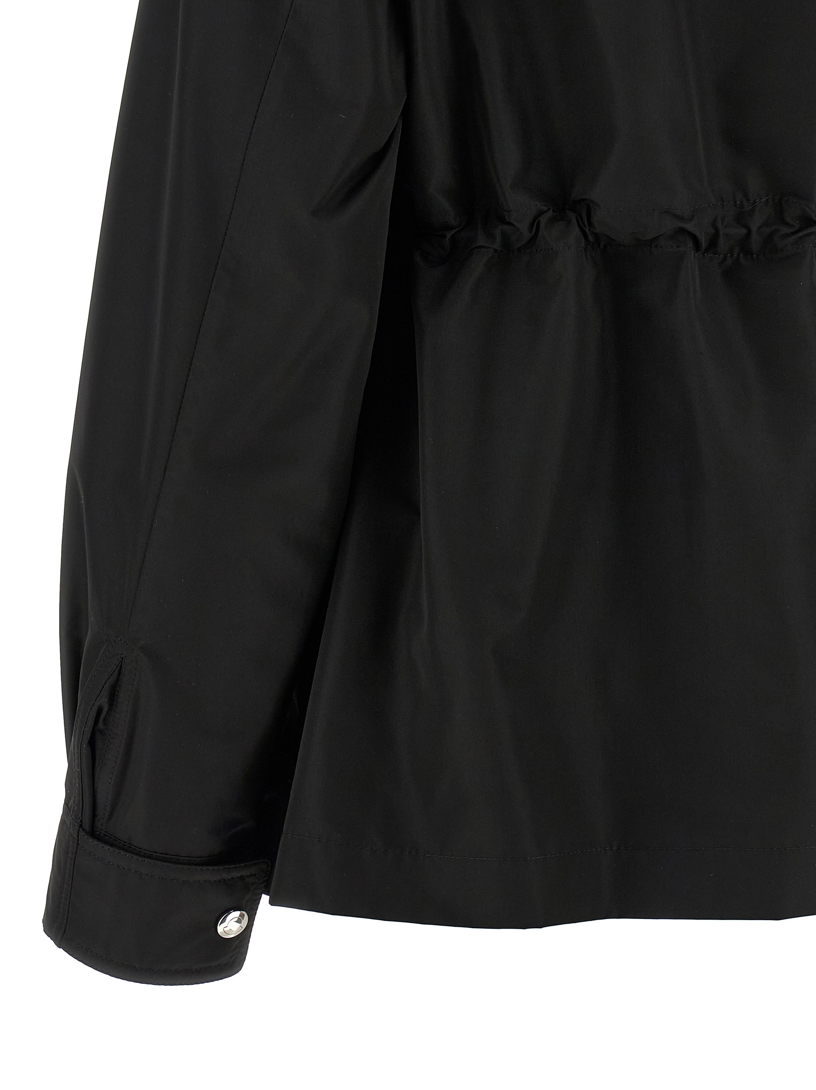 ‘Enette’ short parka in micro taffeta effect fabric, adjustable standing collar with removable hood, front zip closure, drawstring at the waist, pockets, long sleeves with cuffs and felt logo patch appliqué.