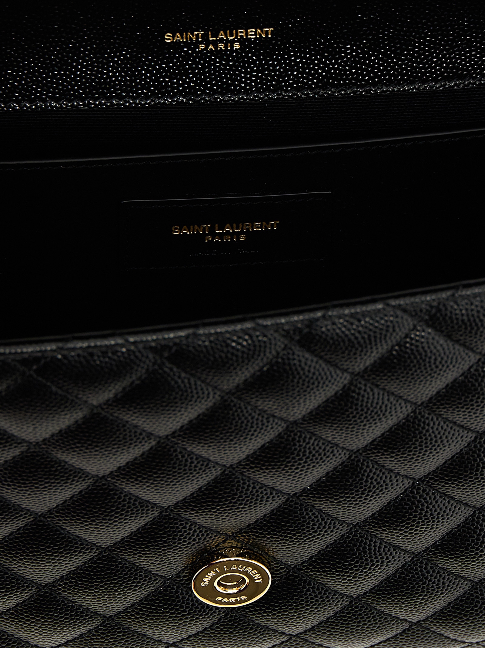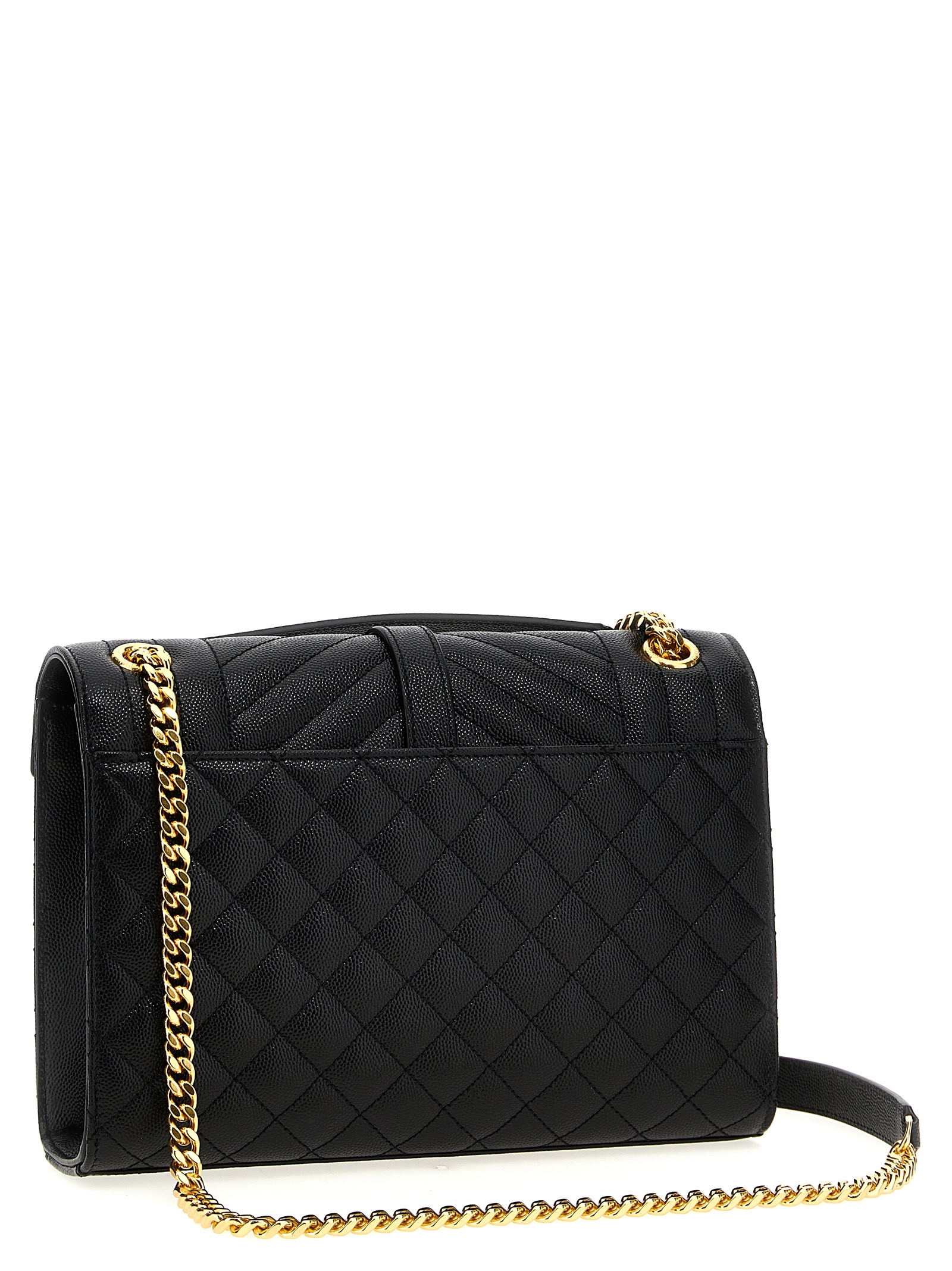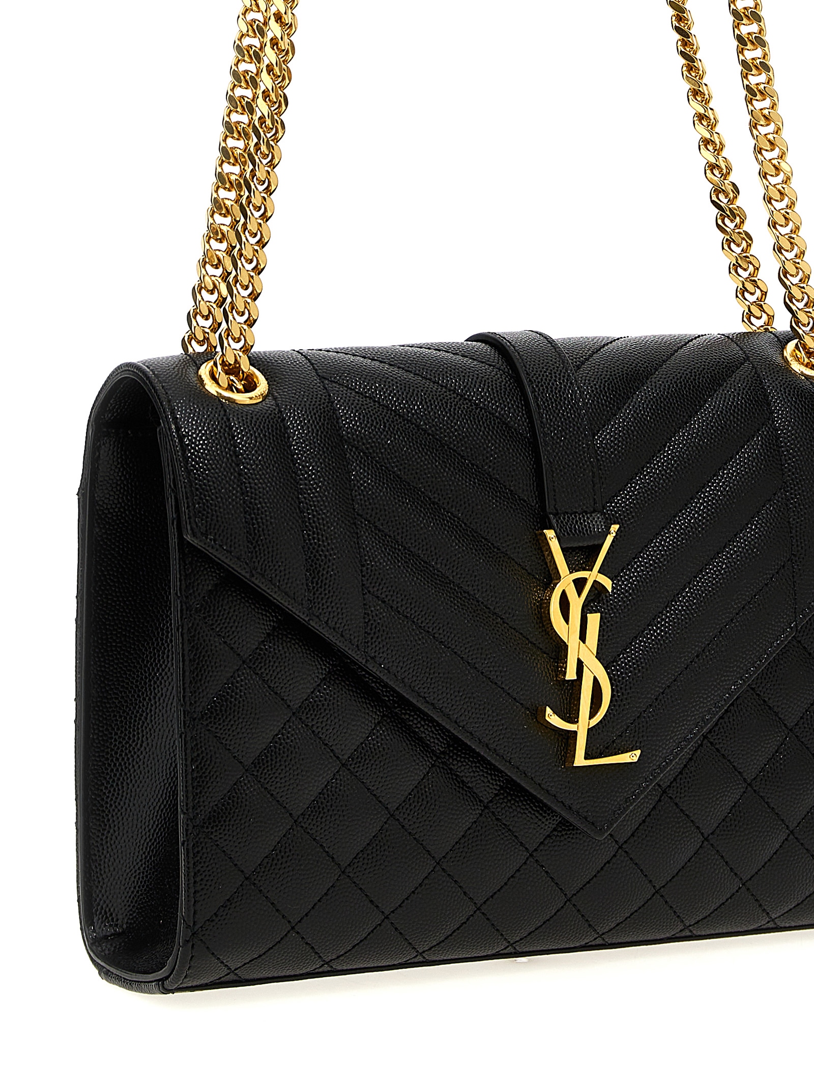 ‘Envelope’ shoulder bag in grain de poudre quilted leather with chevron and diamond quilted stitching, magnetic flap closure, metal Cassandre logo on the front, chain and sliding leather shoulder strap, pocket.