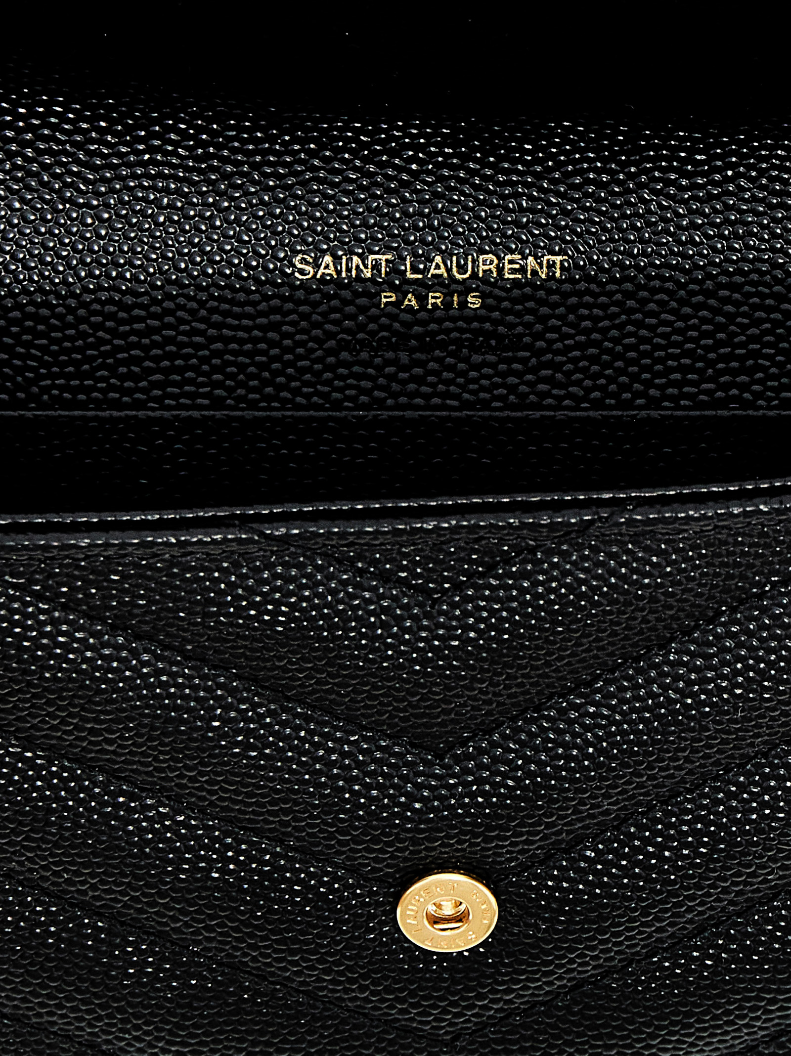 Small ‘Envelope’ wallet in matelassé grain de poudre leather with flap closure with gold monogramm logo.