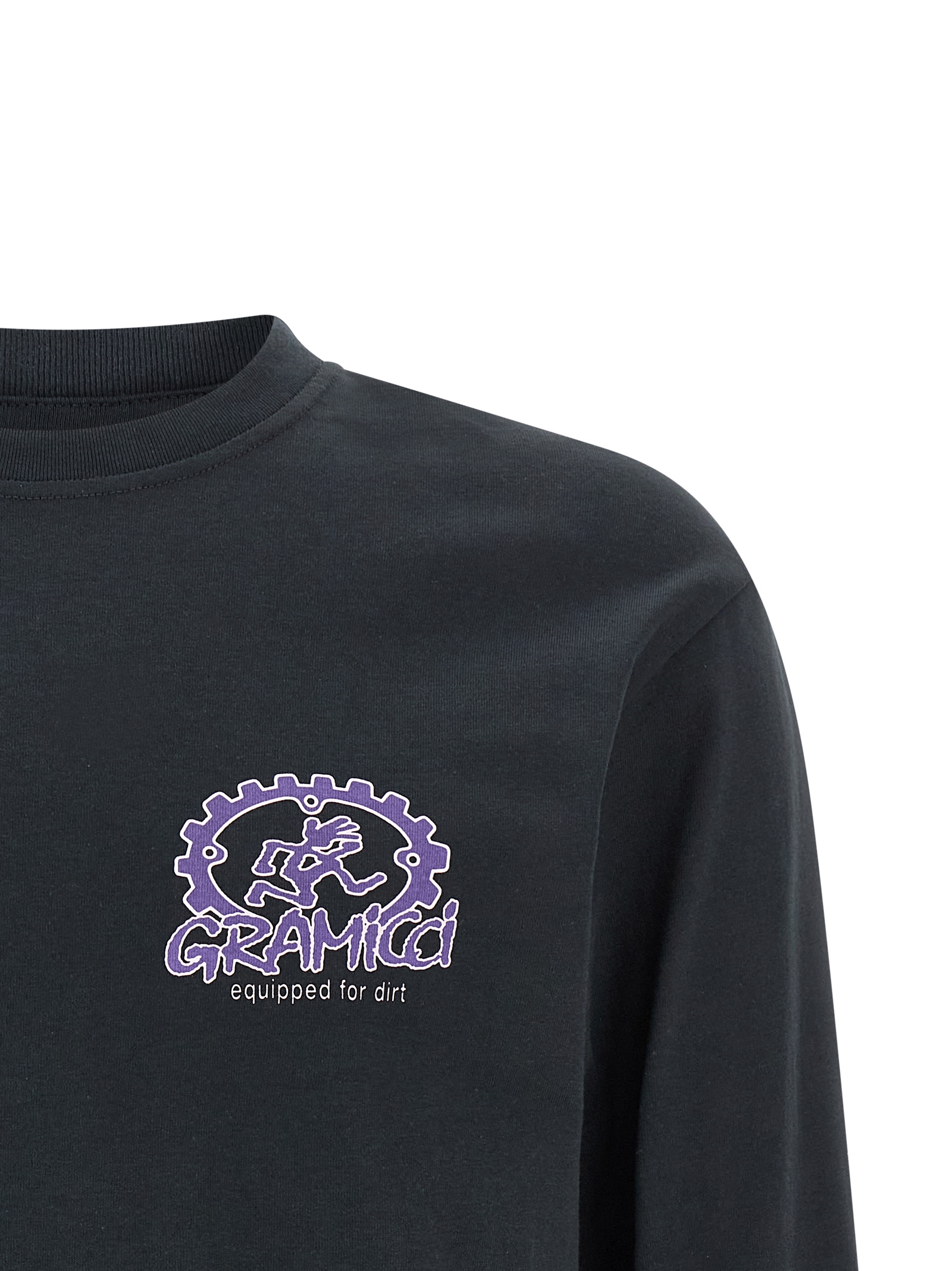 Cotton T-shirt with ‘Equipped For Dirt’ print on the front and back, crew neck, long cuffed sleeves and dropped shoulders.