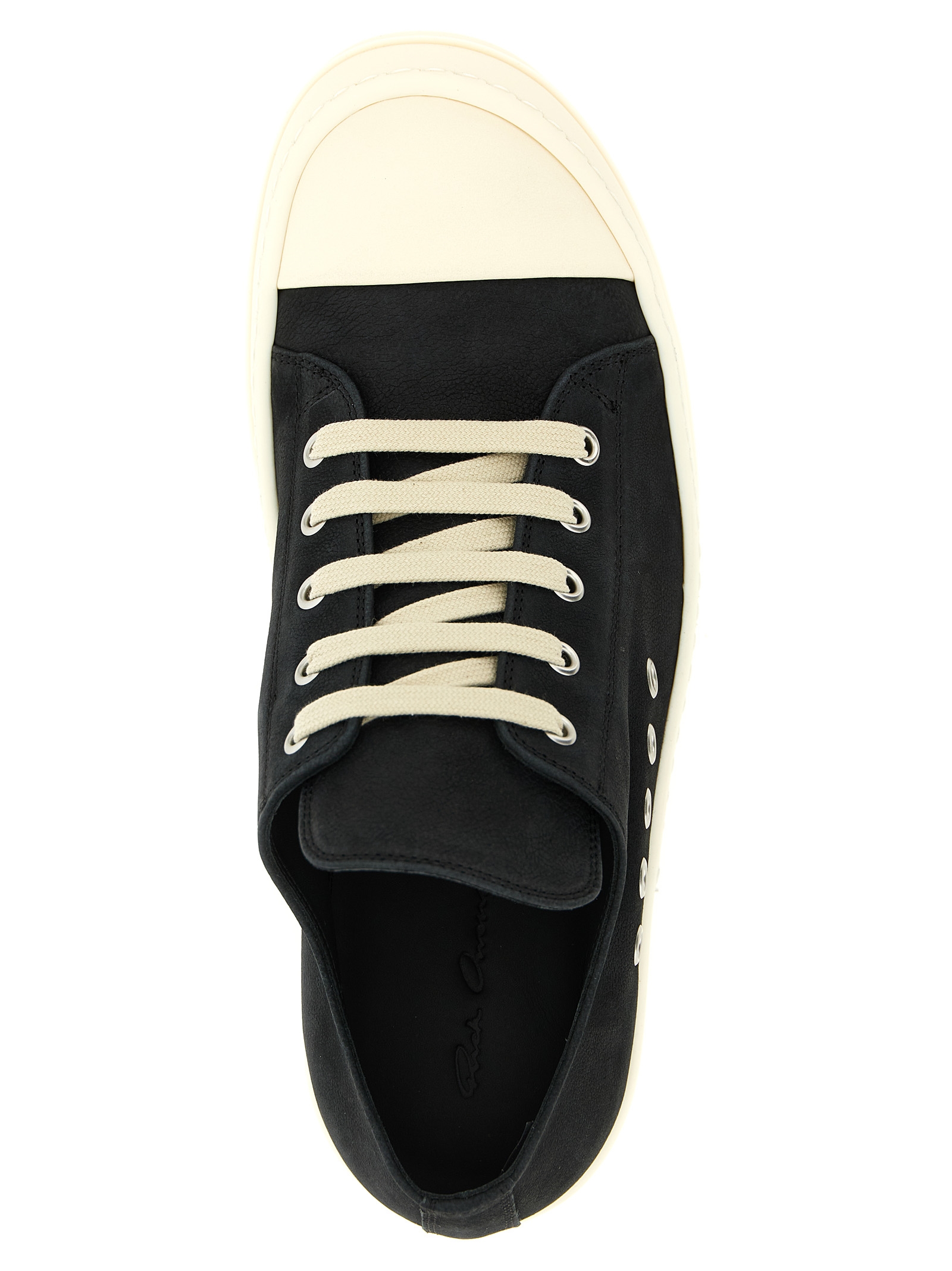 ‘Extreme Low Sneaks’ vintage leather sneakers with laces, side eyelets, rubber sole and toe cap.