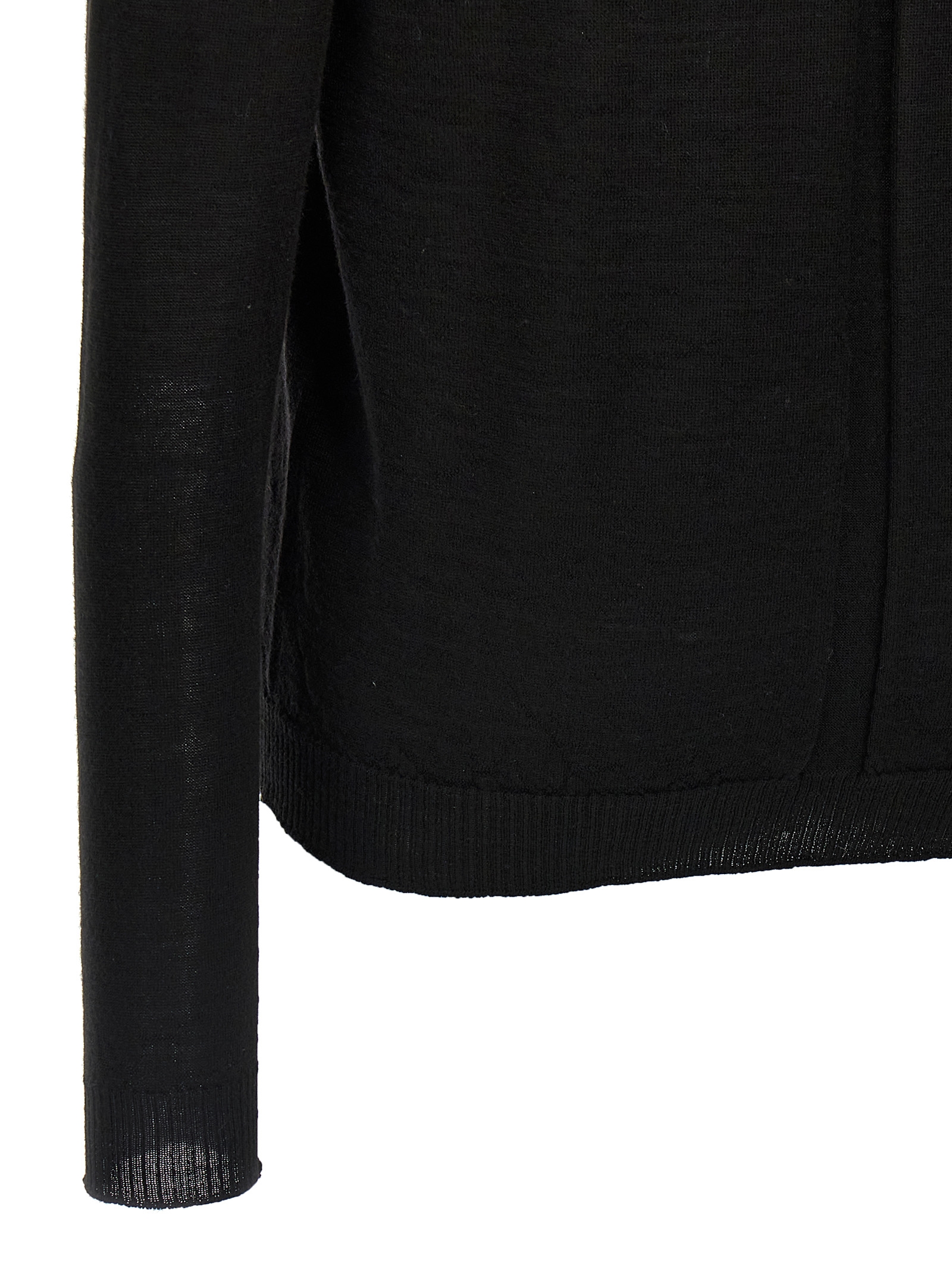 ‘Extreme V neck’ wool sweater with plunge V-neck on the front, long sleeves.