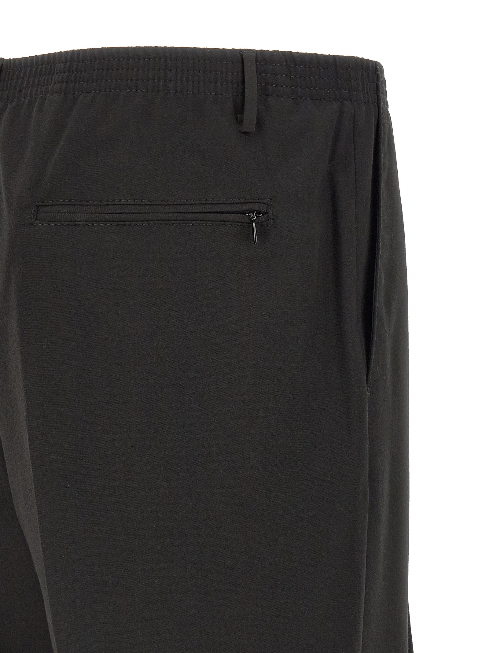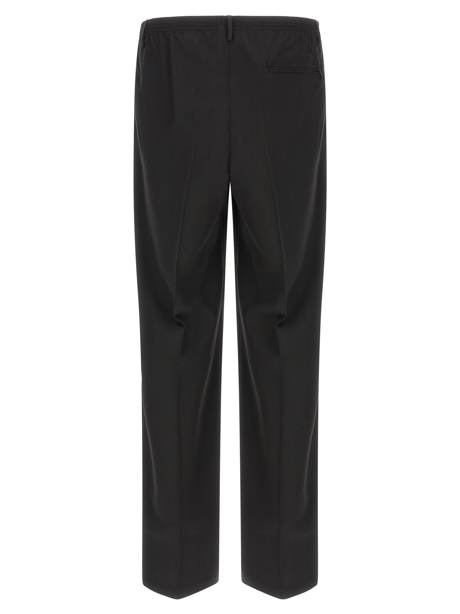 ‘Ezio’ trousers in slightly stretch fabric with elastic waistband, trompe l’oeil flap, pockets, straight leg, pleats, stretched pleat.