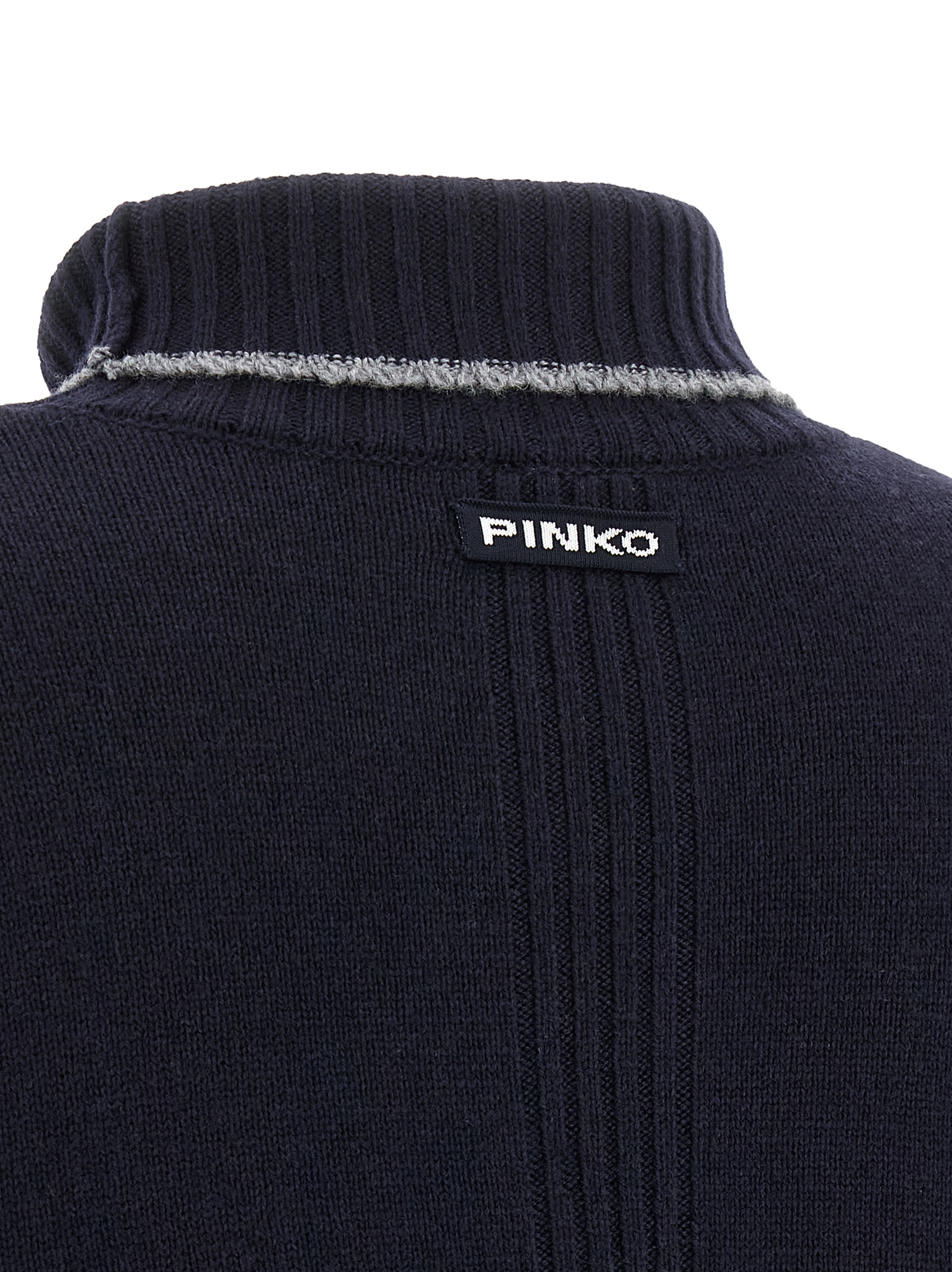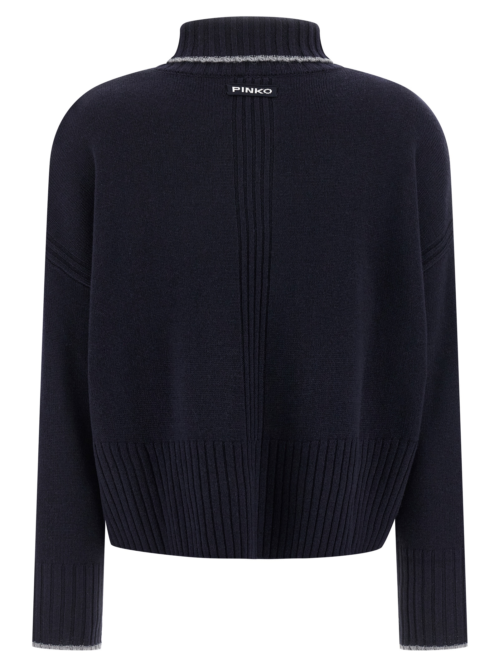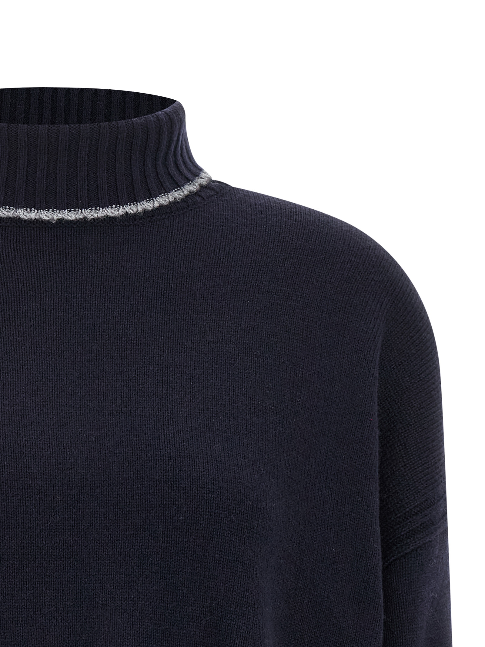 ‘Falkland’ merino wool and cashmere blend turtleneck sweater with contrast details, turned-up high neck, back logo patch, long sleeves with dropped shoulders.