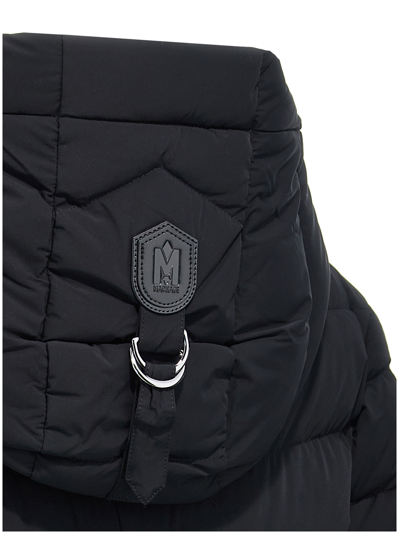Long ‘Farren’ nylon jacket padded with duck feather, leather details, removable hood, zip closure, pockets, long sleeves.