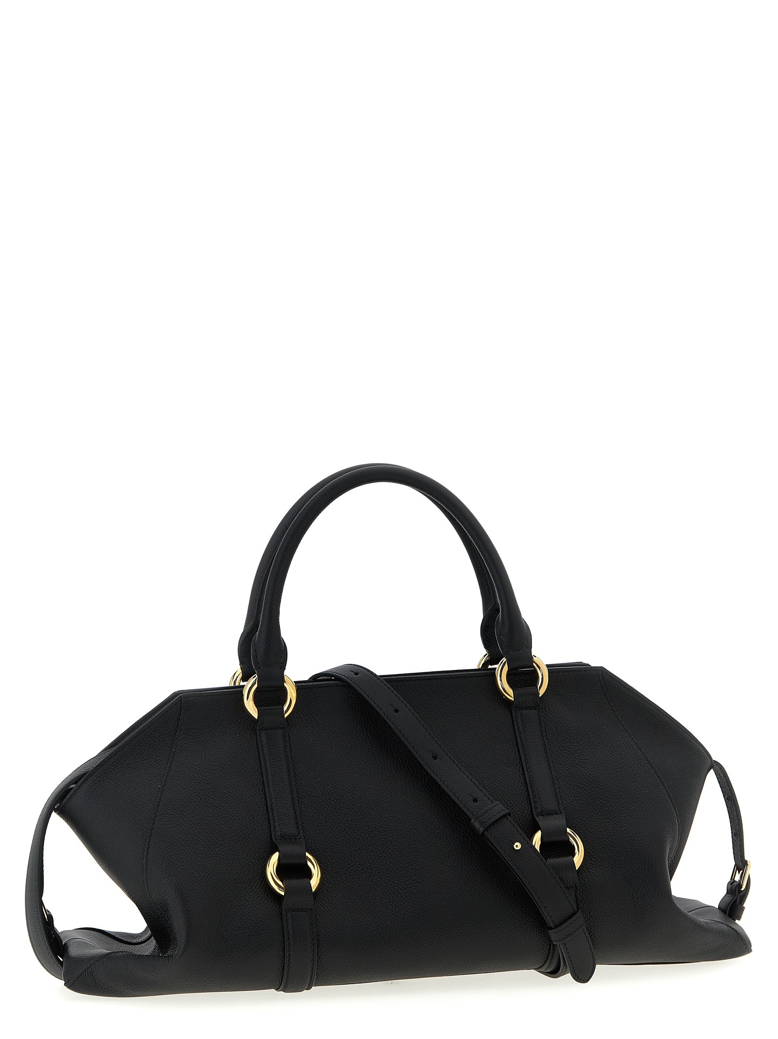 ‘Farrington’ leather handbag, adjustable side straps, fixed leather handles, zip closure, front embossed logo, adjustable and removable shoulder strap