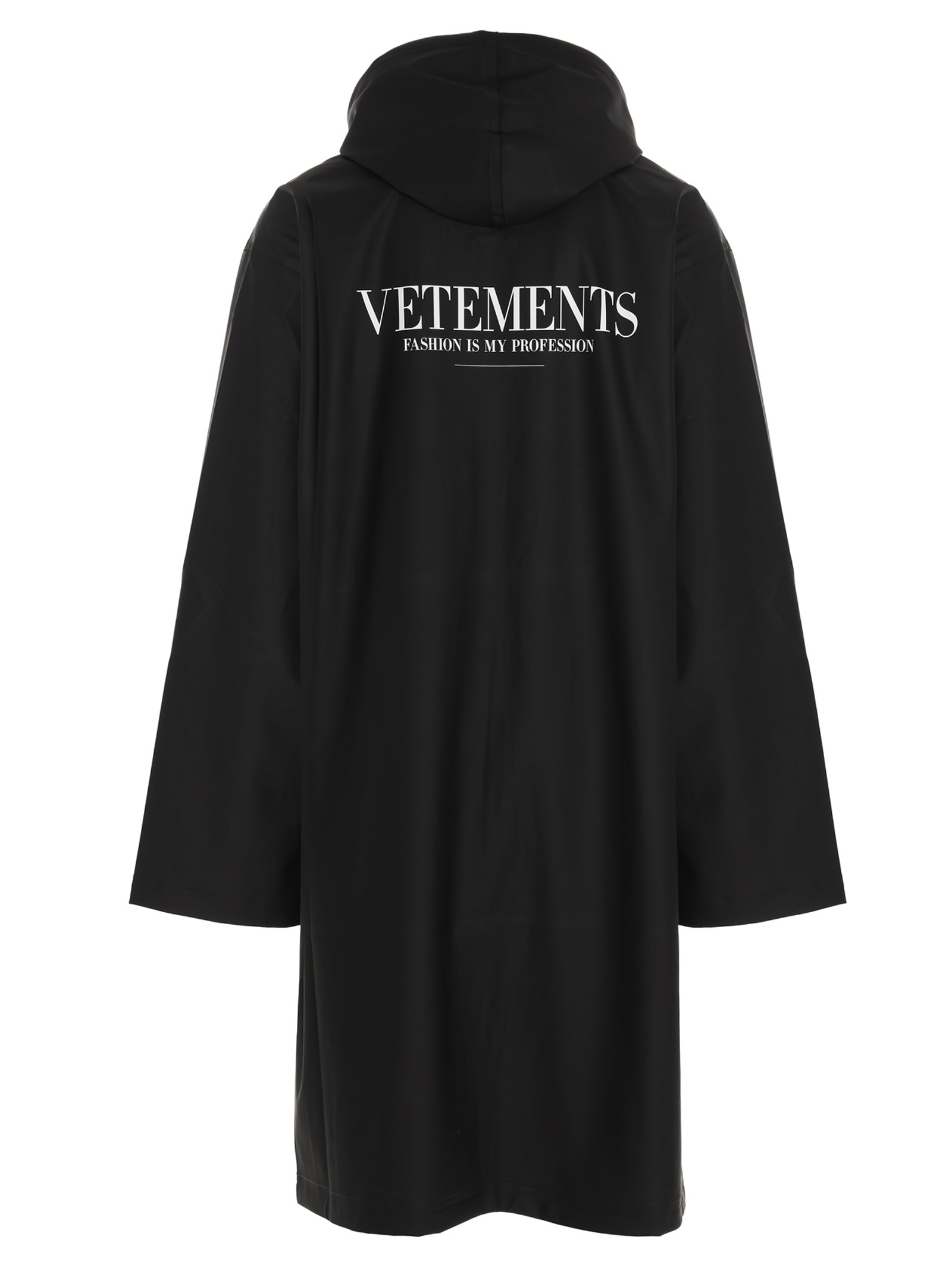 ‘Fashion is my profession’ long raincoat with a zip and snap buttons, a hood, long sleeves, an oversize fit, and a unisex style.