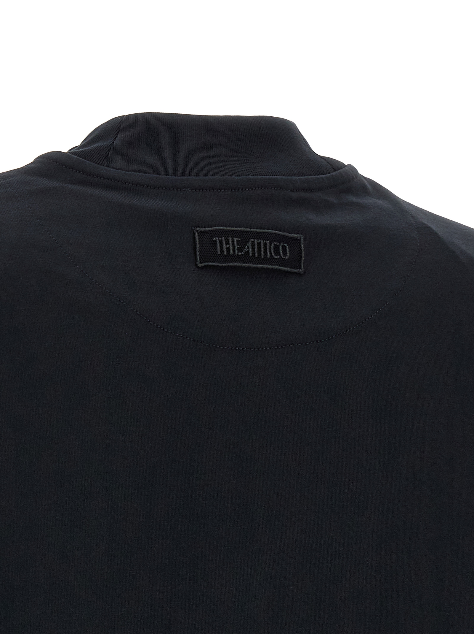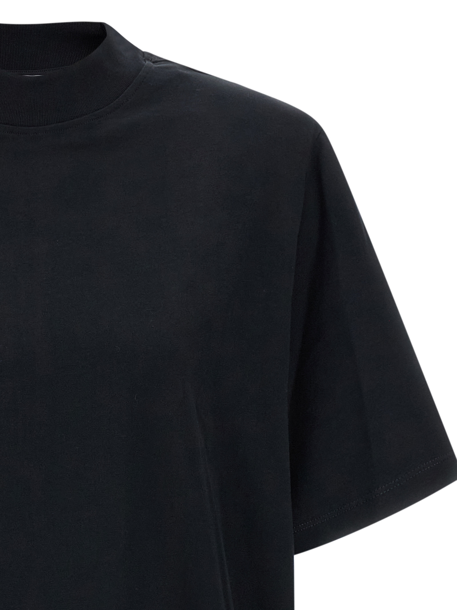 T-shirt mini dress in light cotton jersey with crewneck, removable padded shoulder straps, short sleeves, and hem with tone-on-tone marabu feather application.