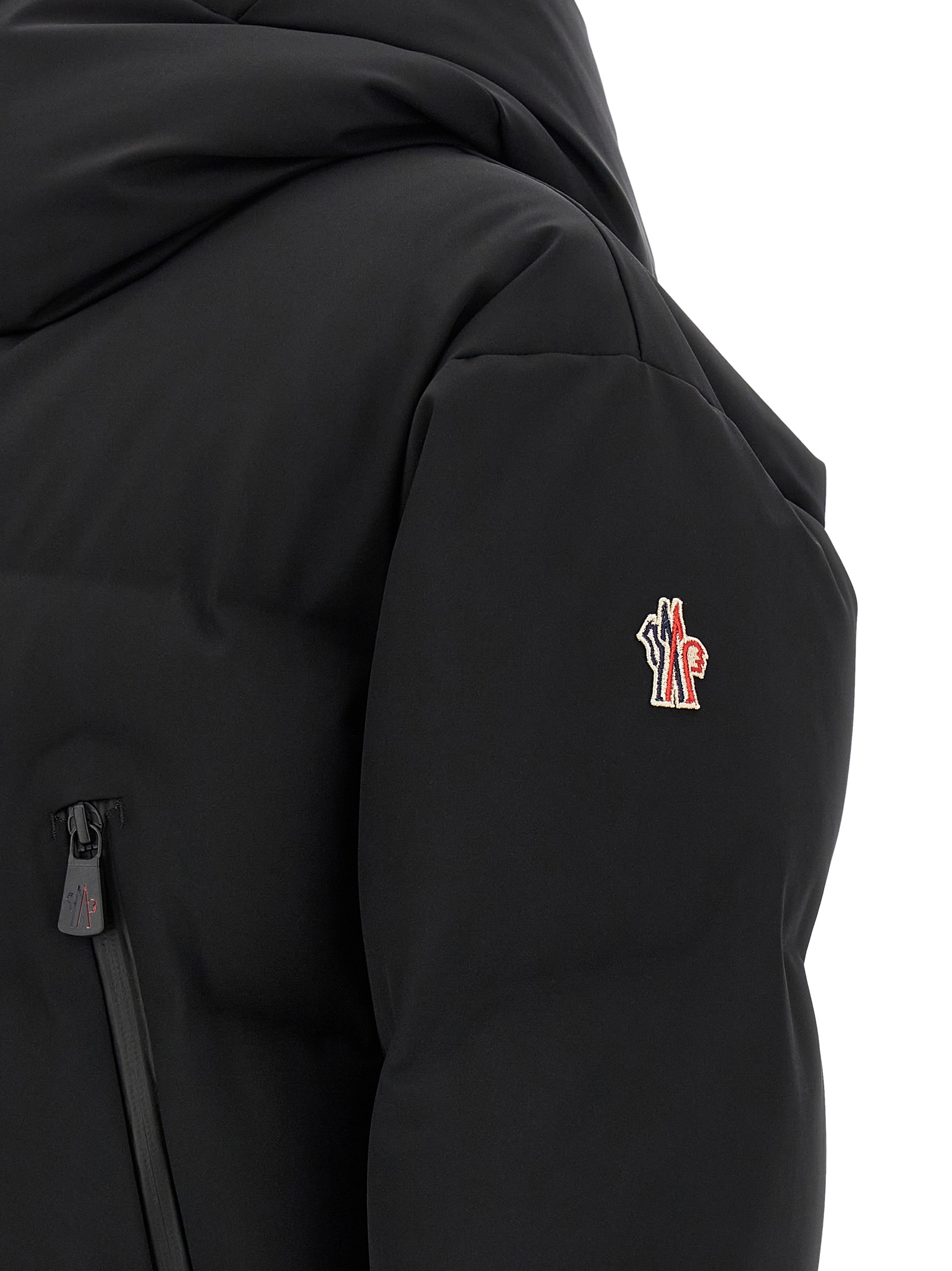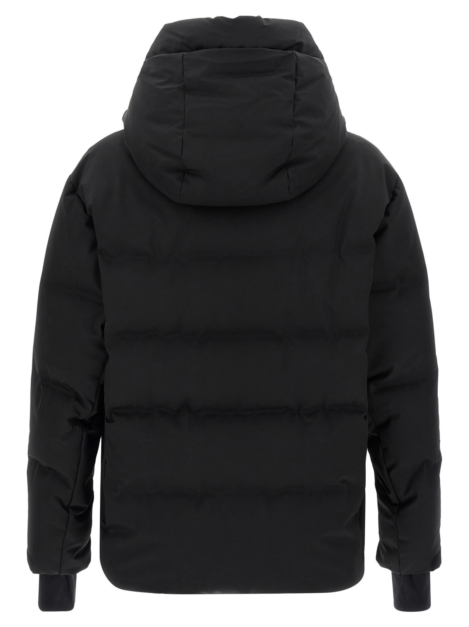 ‘Fellberg’ short ski down jacket in water-repellent quilted 4-way stretch 4L nylon, micro ripstop lining with PrimaLoft® Gold Insulation Active technology, YKK® AquaGuard® Highly Water-Resistant zip closure on the front, high neck, adjustable hood, long sleeves with windproof gaiter and logo patch appliqué, windproof gaiter and drawstring on the hem.